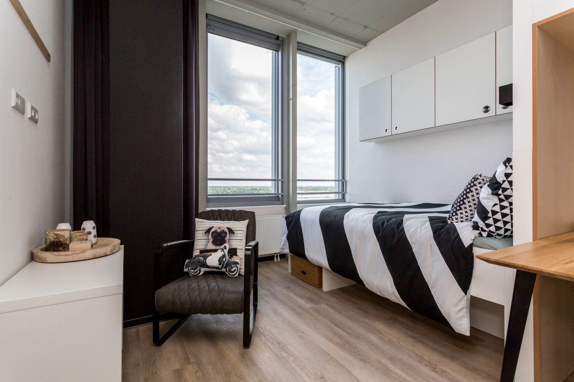 De Universiteit is helemaal om de hoek, het complex ligt op de campus zelf en vlak naast de Universiteit van Eindhoven! Deze appartementen hebben een contract voor onbepaalde tijd zolang je student bent. Deze studio heeft een eigen badkamer en keuken. De ruimte is gestoffeerd en gemeubileerd, zodat je er direct in kunt trekken. Het complex biedt je ook gezamenlijke ruimtes waar je huisgenoten kunt ontmoeten. Behalve de huur, komen ook de nuts- en servicekosten voor je rekening. Er een wasserrette in het pand aanwezig waar je tegen betaling met de Pay2Wash app gebruik kunt maken van de wasmachines en drogers.