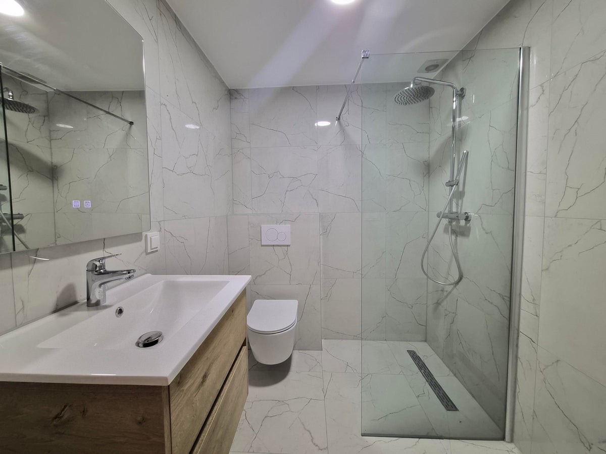 Verder is het appartement voorzien van een moderne badkamer met douche cabine, vaste wastafel, toilet en wasmachine aansluiting.