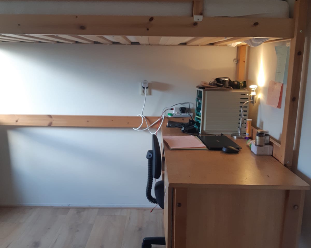 The owner lives on the first floor, the student room is on the second floor.