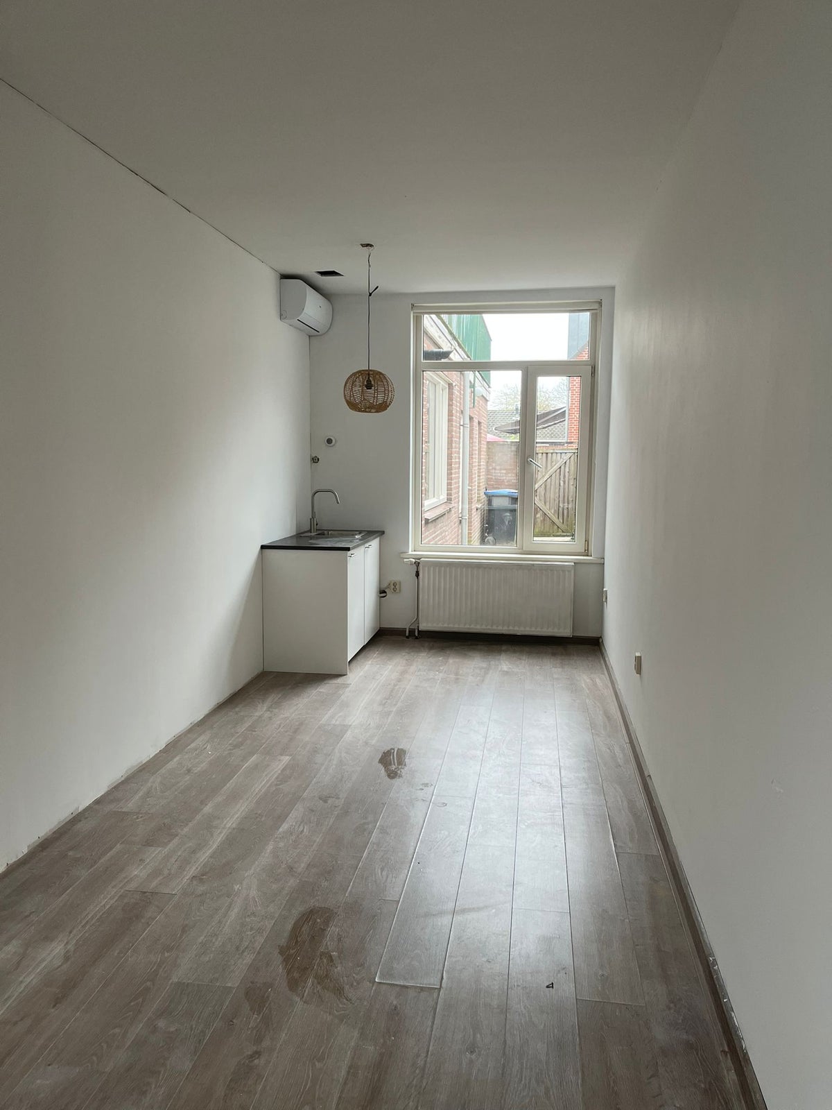 De woning heeft in totaal 5 kamers. Deze kamer is 18,7 m2, heeft een pantry met wasbak, koelvries combinatie en een airco. Deze kamer bevindt zich op de begane grond. Verder deel je een badkamer, keuken en een toilet.