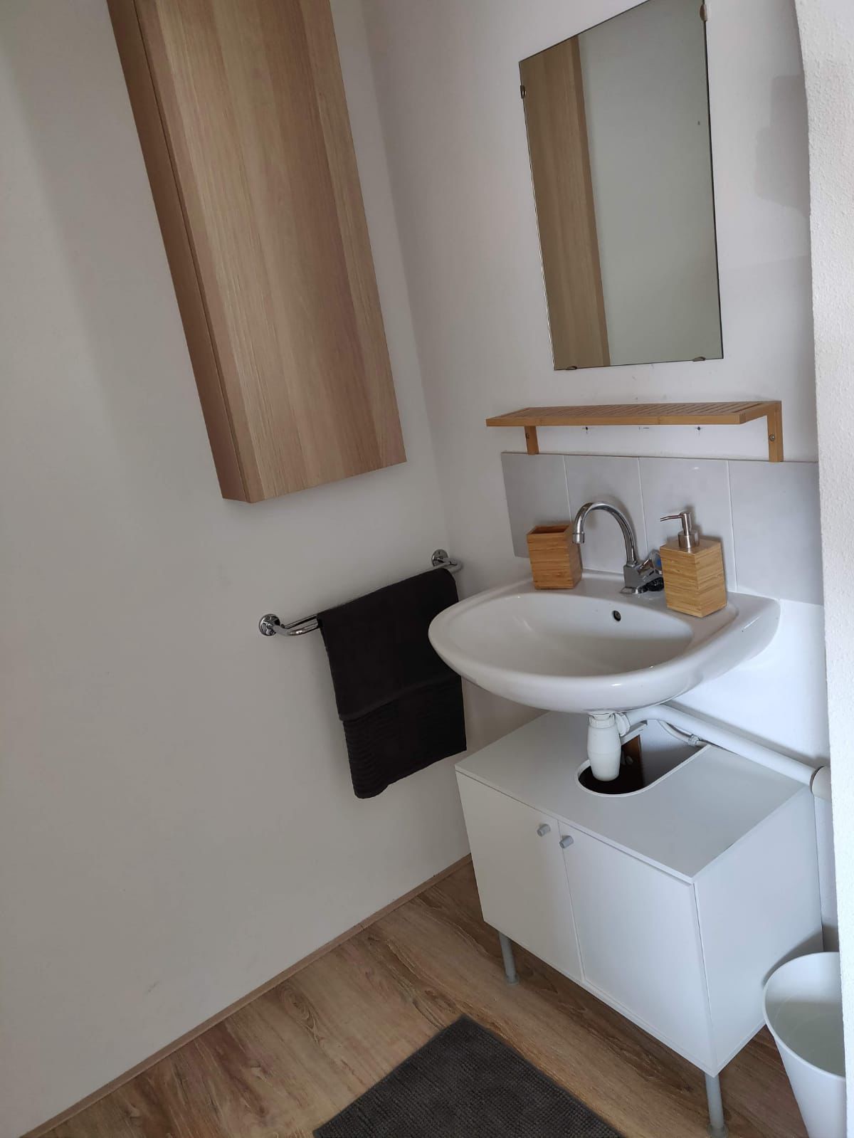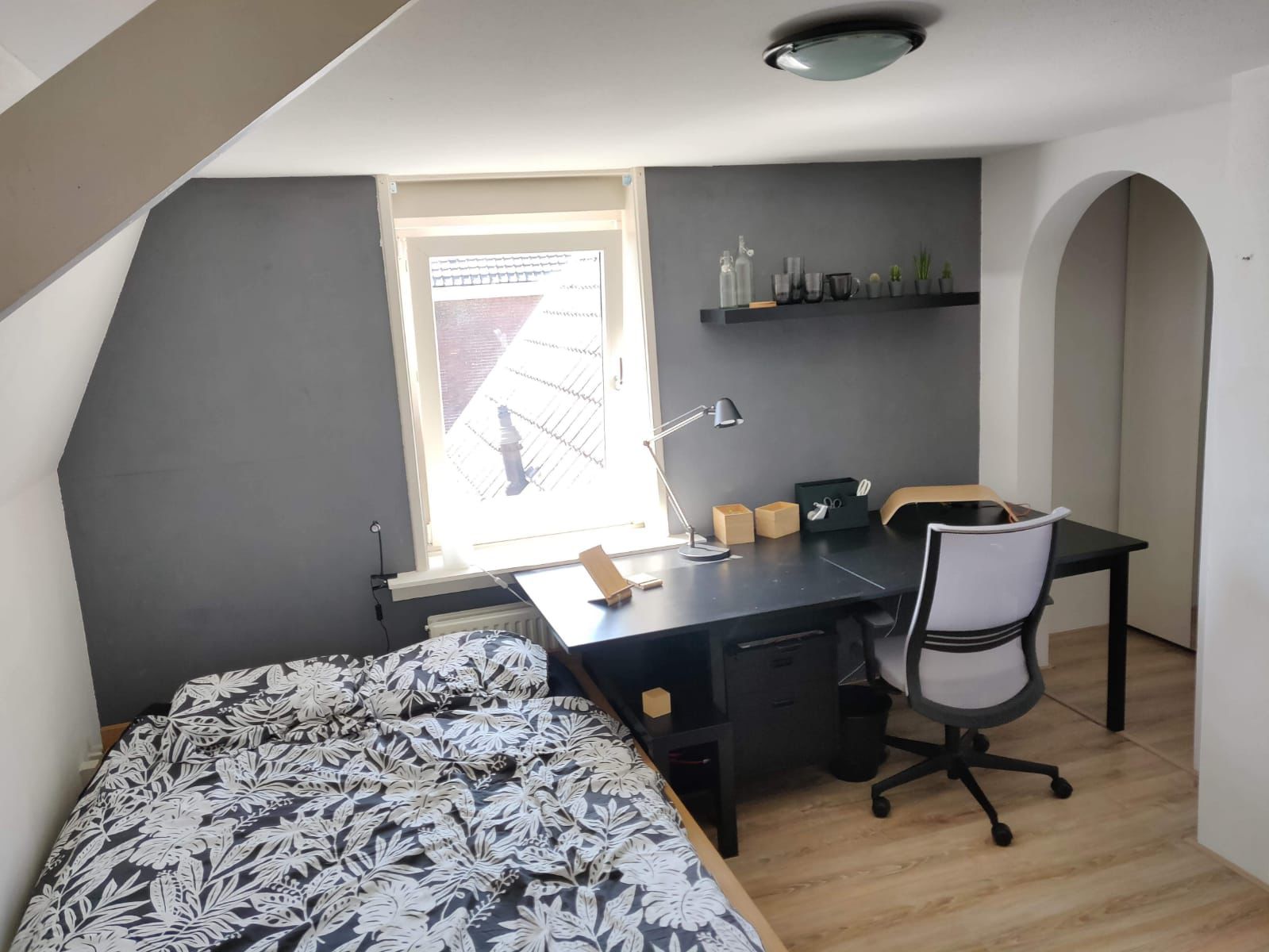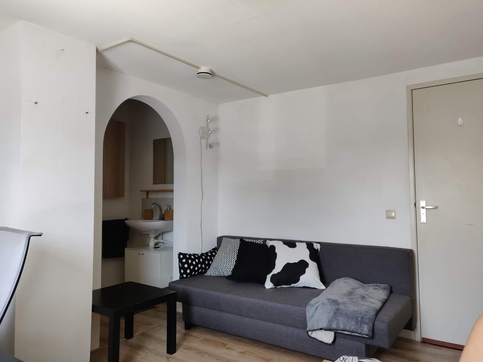 We delen een woonkamer, 2 badkamers en een keuken. Iedere kamer heeft ook een eigen wasbak. De stad, de campus en de Albert Heijn zijn 7 minuutjes fietsen.