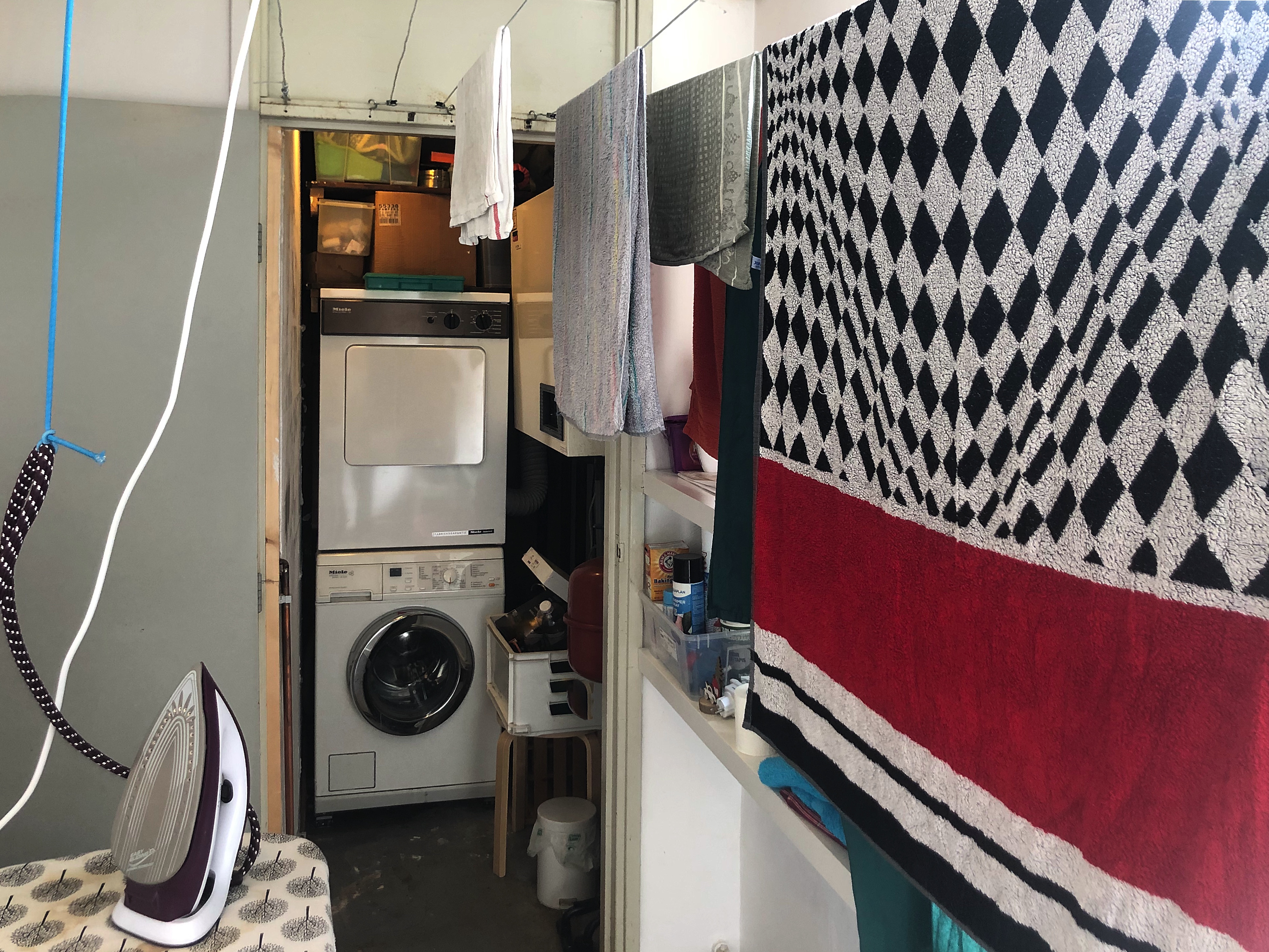 • Wasmachine en droger op dezelfde verdieping, met drooglijnen.