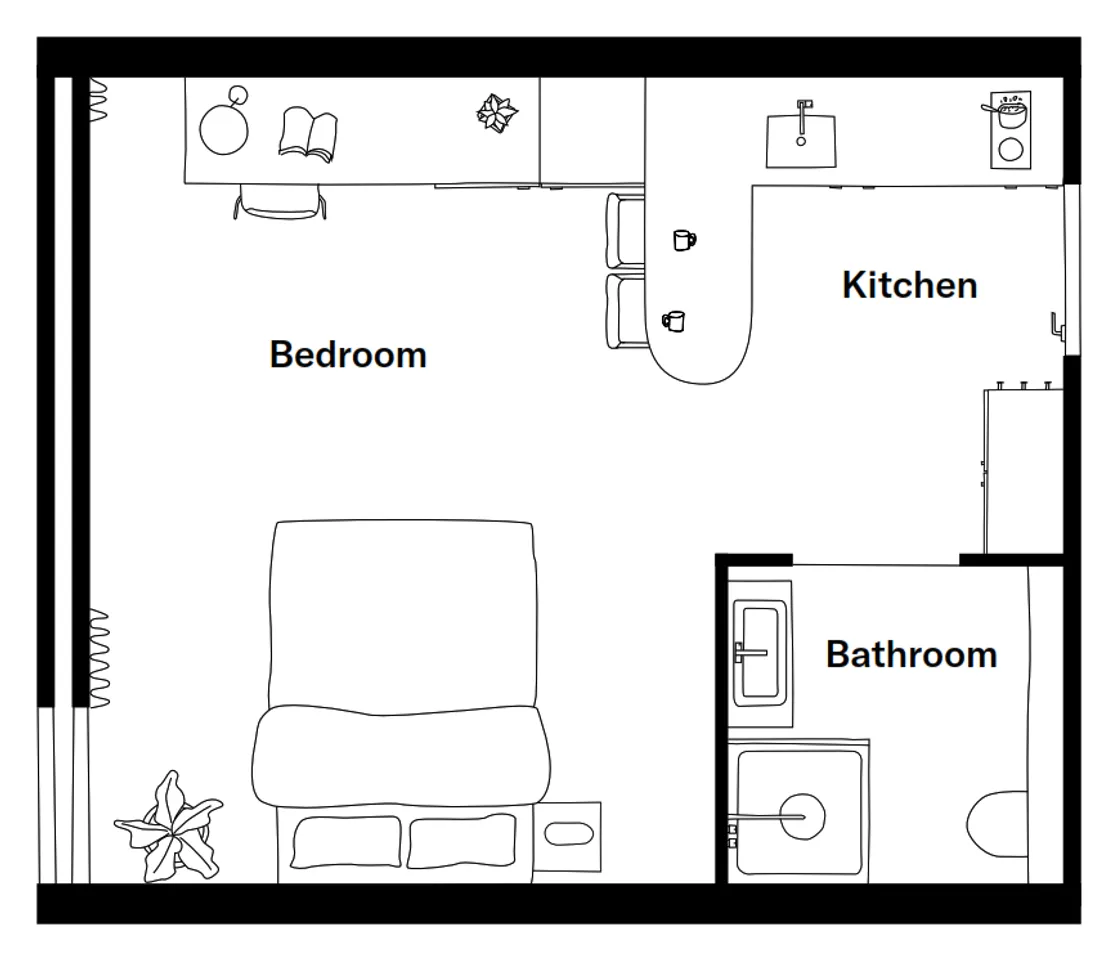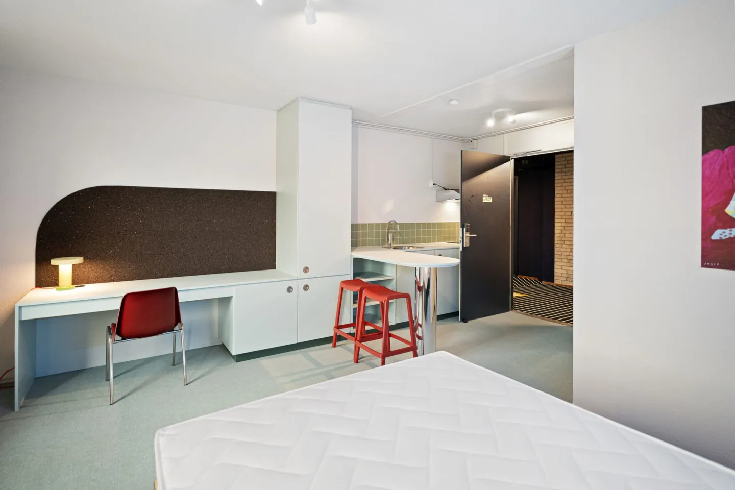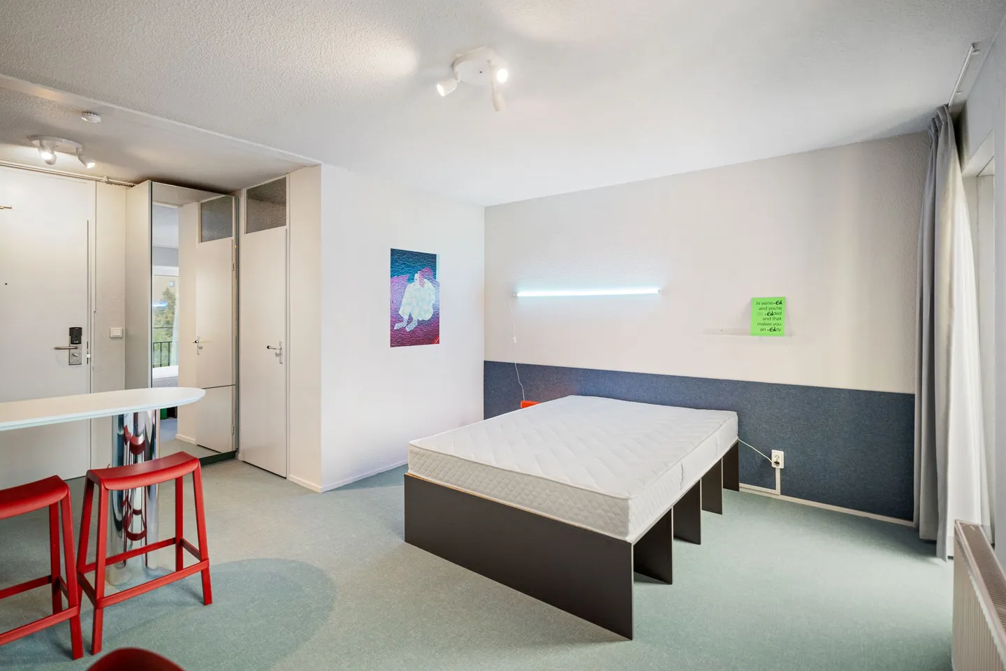 Fully furnished 'Single-Ed' studio in the modernized campus complex The Ed. The studio features a double bed () with mattress, a luxury open kitchen (with built-in appliances), a bathroom with toilet, shower, and sink, a desk with chair, sufficient storage and wardrobes, and high-speed internet. The studio is located on the 3rd floor (east side).