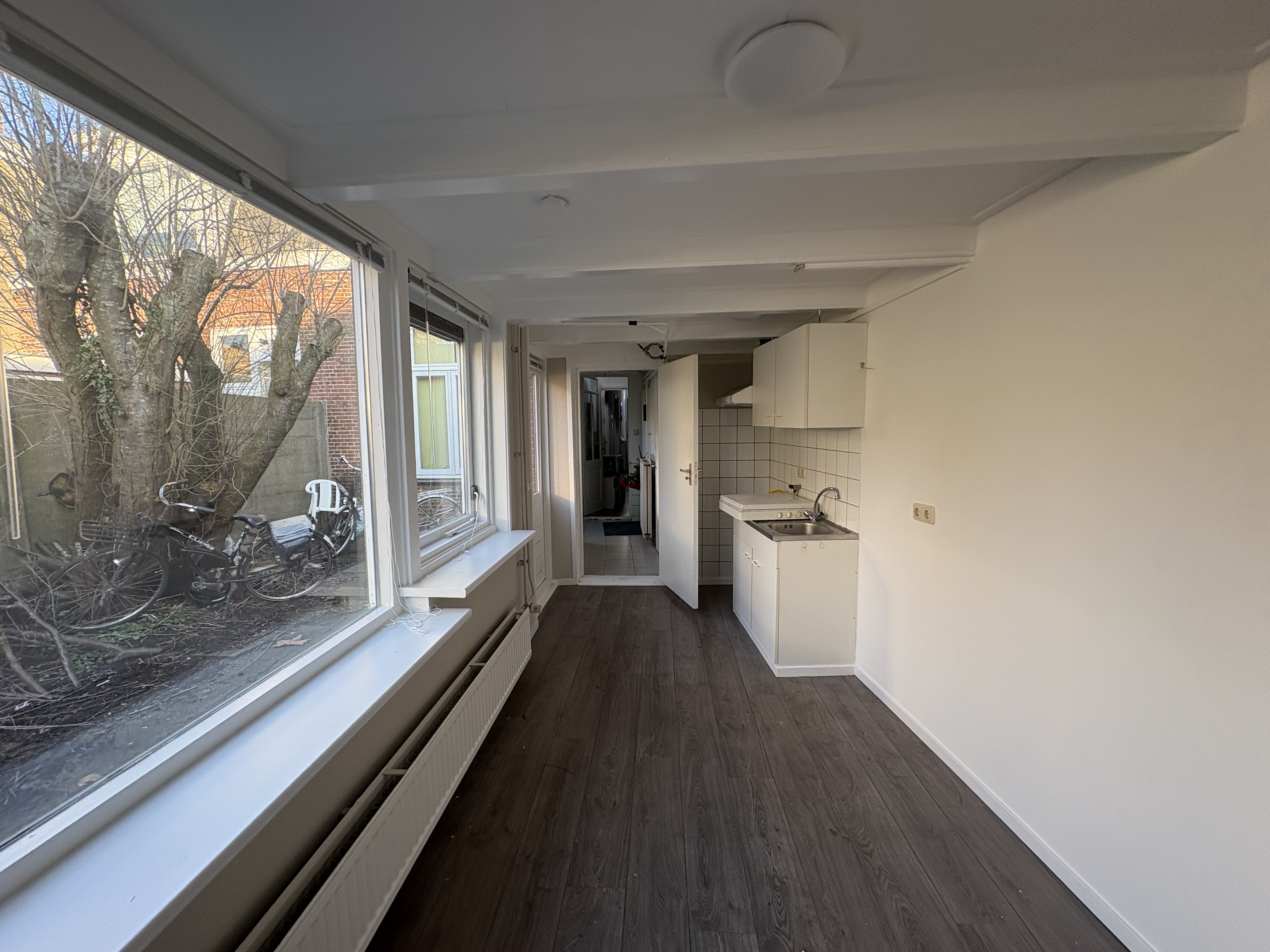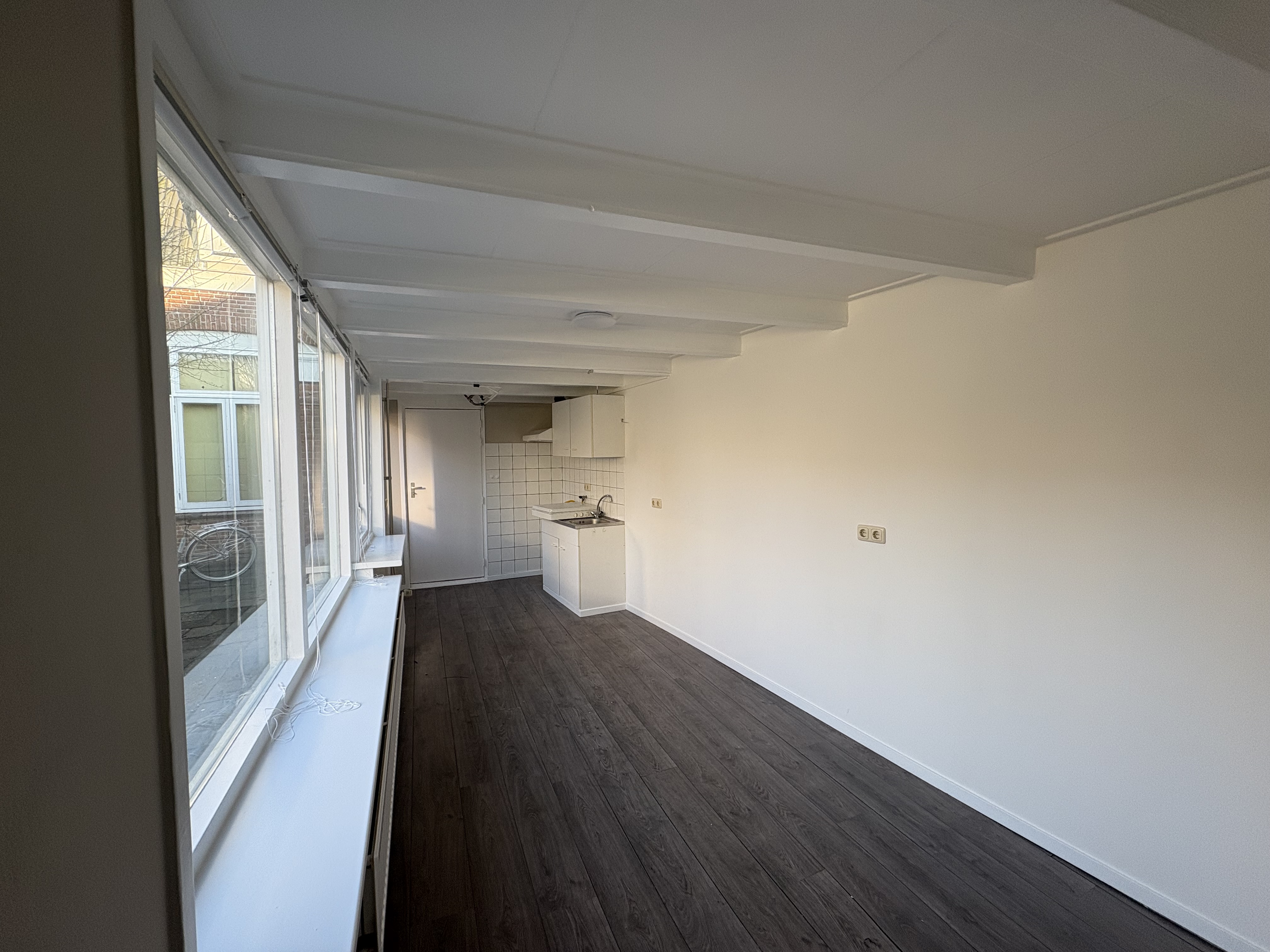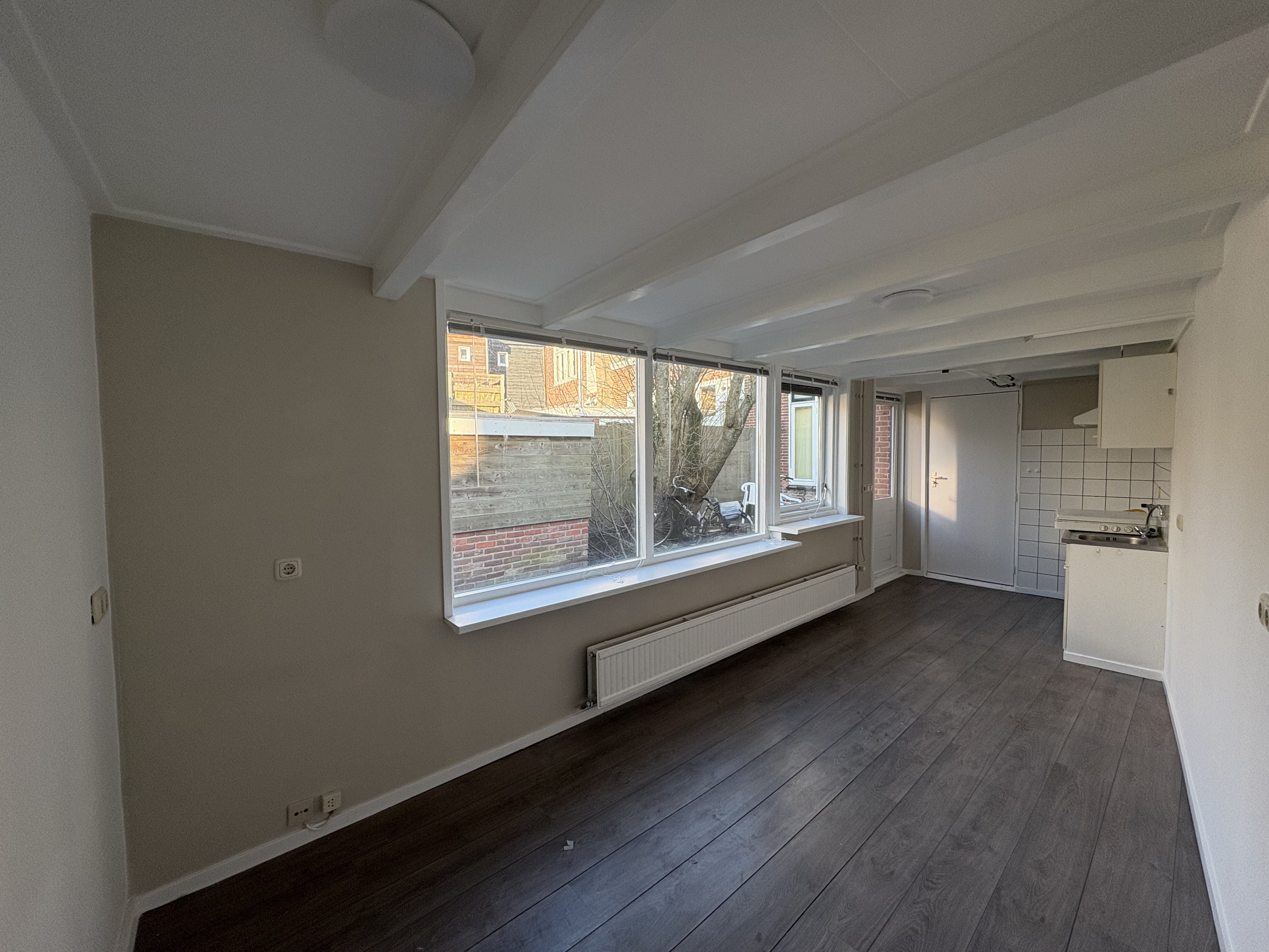 Deze leuke studentenkamer aan de Elizabethstraat bevindt zich op de begane grond, aan de achterzijde van de woning.