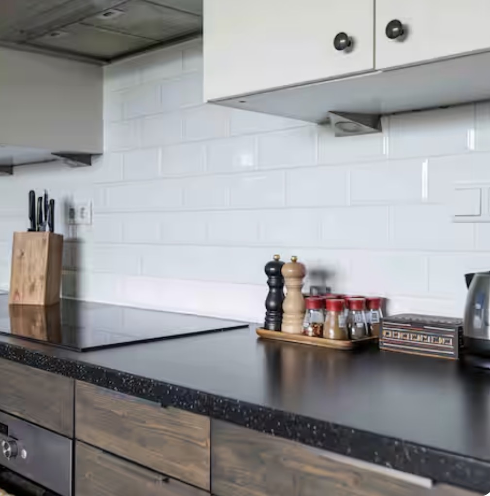 Woonkamer, keuken, toilet, gang, balkon gedeeld (55m2).