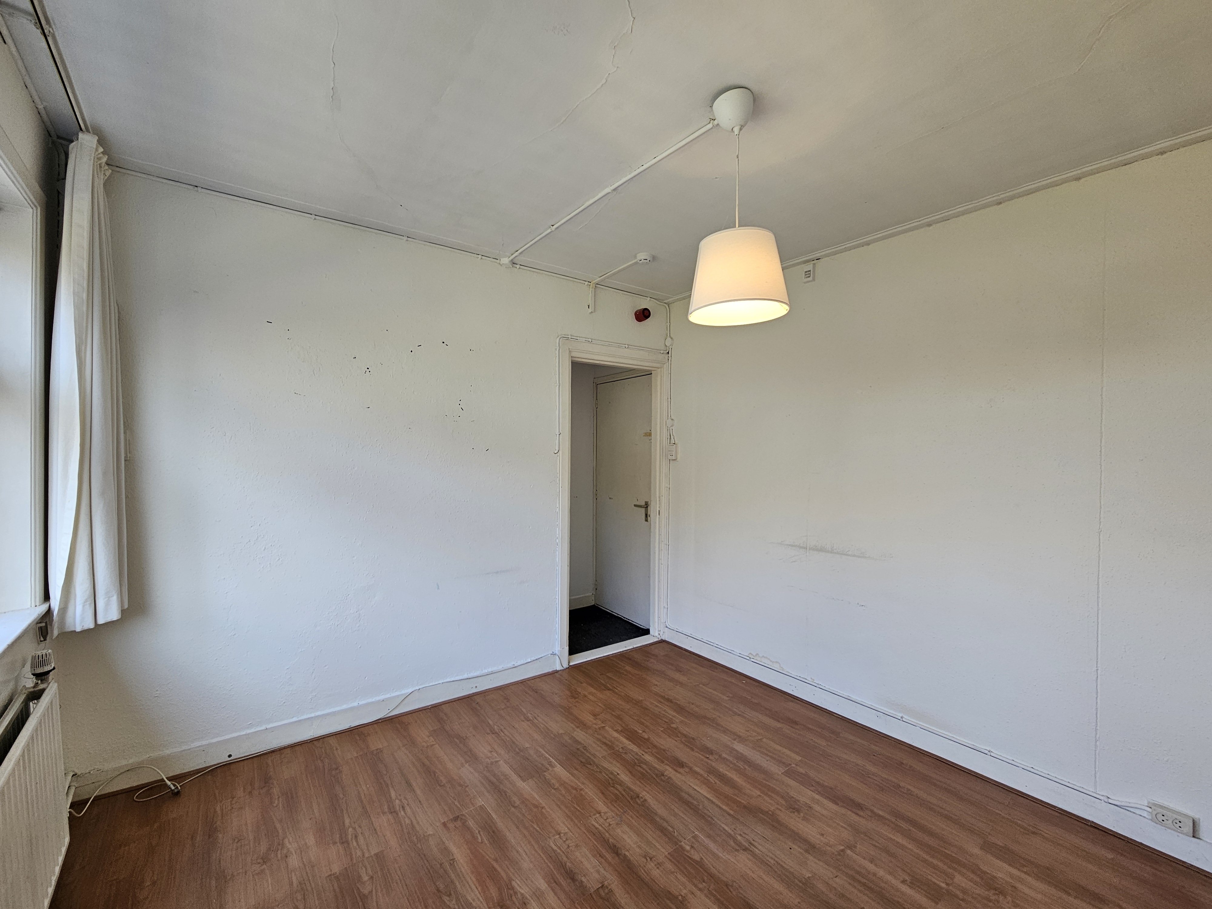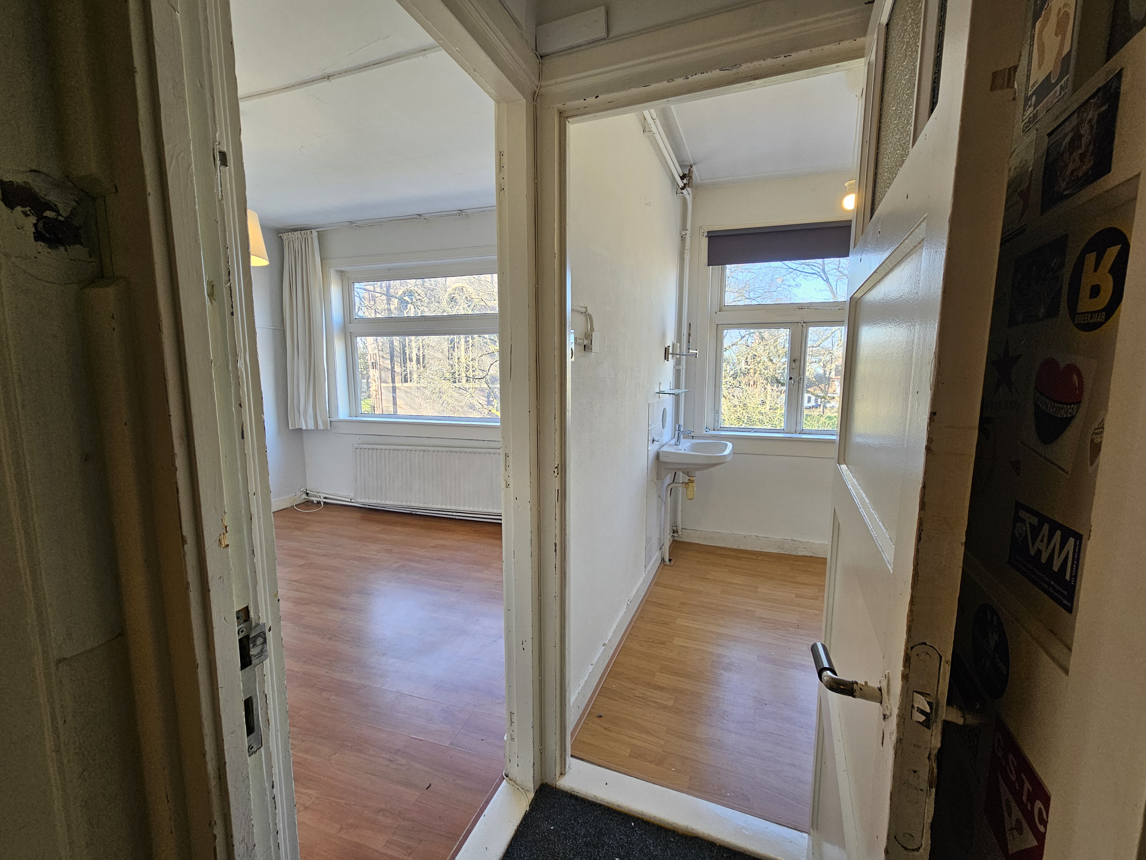 Bij binnenkomst in het studentenhuis tref je op de 2e etage aan de voorzijde de beschikbare kamer. De kamer bestaat uit twee ruimtes welke je kunt gebruiken als woonkamer en aparte slaapkamer.