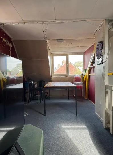 De kamer is beschikbaar. De kamer is ongeveer 10 vierkante meter en heeft een raam en deur naar buiten.