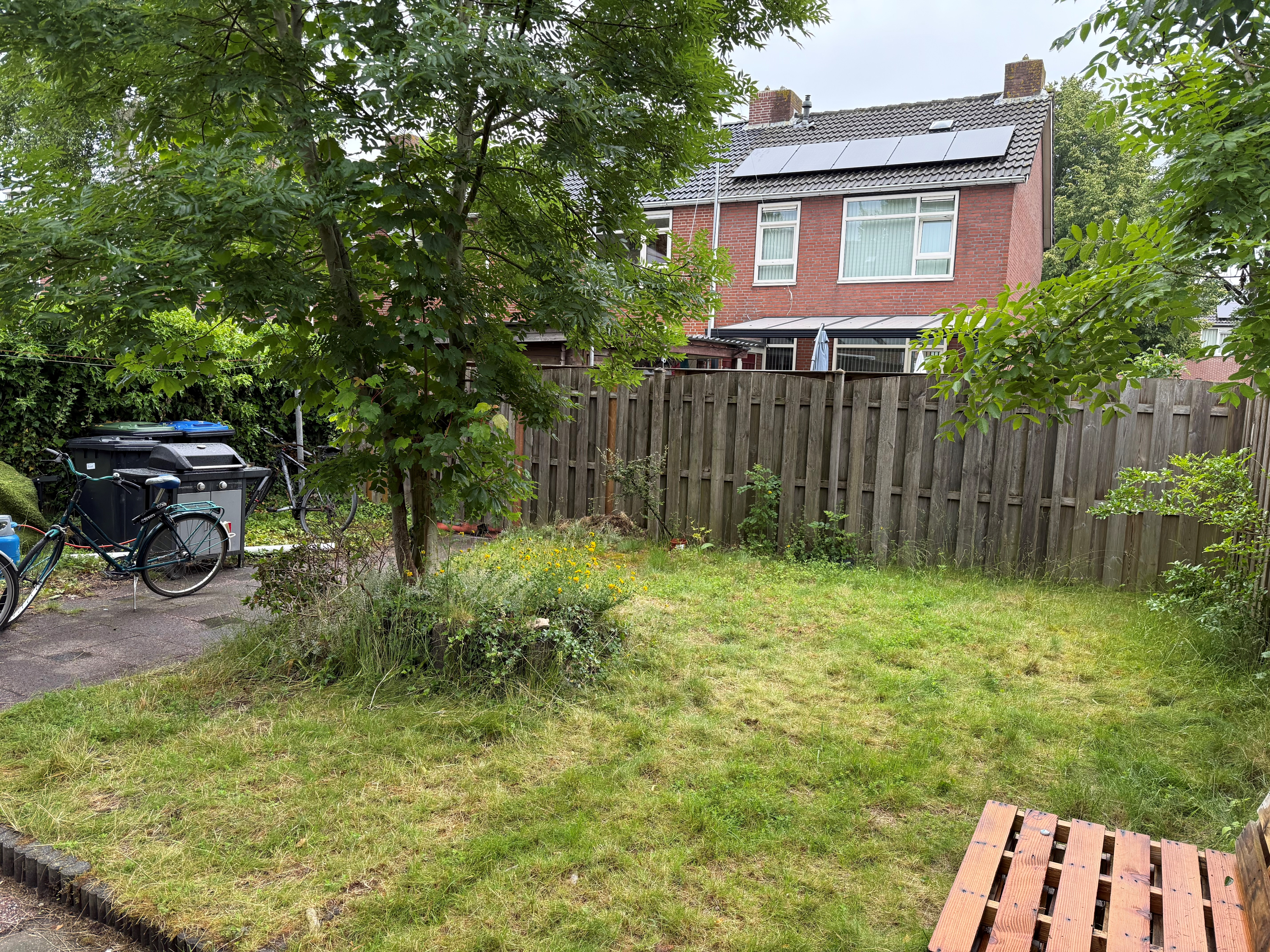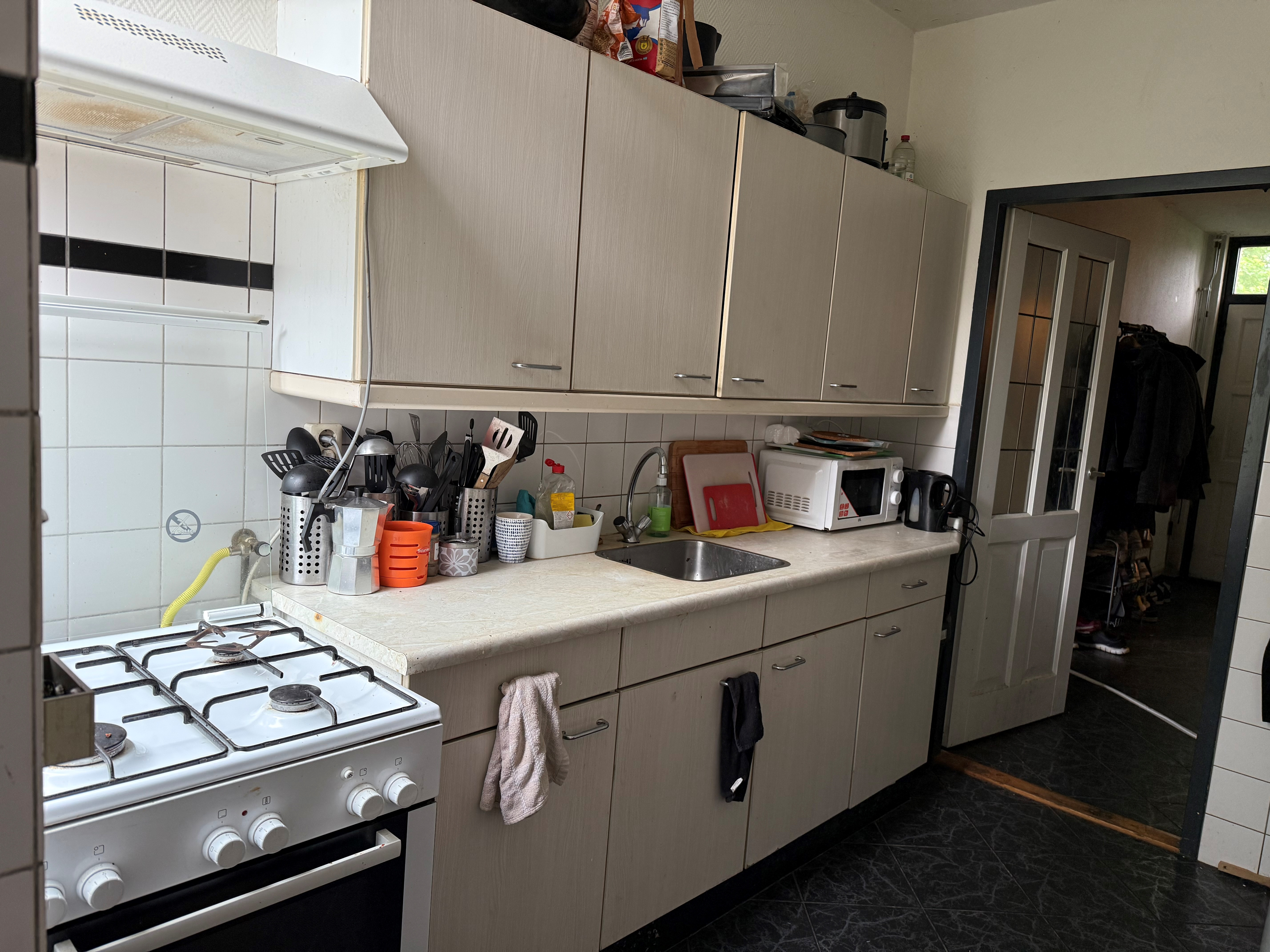 Op de begane grond is de keuken, gemeenschappelijke woonkamer, toilet en 1 slaapkamer. Op de eerste verdieping zijn nog 3 slaapkamers en de badkamer voorzien van douche, wasbak en handdoekradiator. De 5e slaapkamer is op de tweede verdieping en dit is ook de slaapkamer die beschikbaar komt. Daarnaast beschikt de woning ook over een riante tuin waar je in de zomer heerlijk kunt zitten.