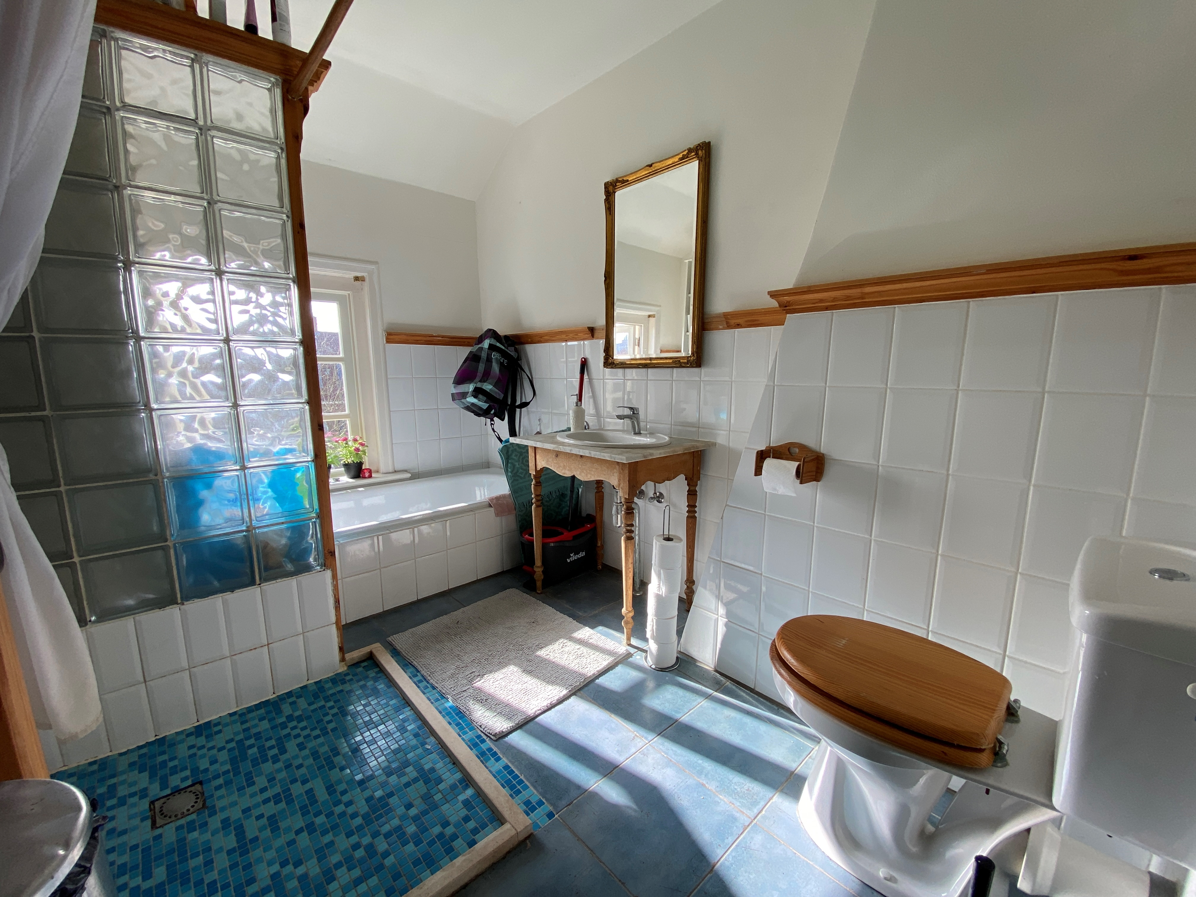 De keuken is uitgerust met een afzuigkap, gaskookplaat, combioven, koelkast en vaatwasser. Het toilet bevindt zich op de hal. Op de tweede verdieping bevindt zich de badkamer, voorzien van een douche, wastafel en toilet. De gemeenschappelijke ruimtes worden gedeeld met vier vrouwelijke medebewoners.