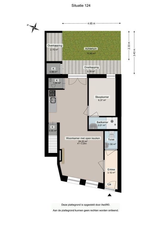 Het appartement bevindt zich op de begane grond en heeft een totale woonoppervlakte van circa 45m².