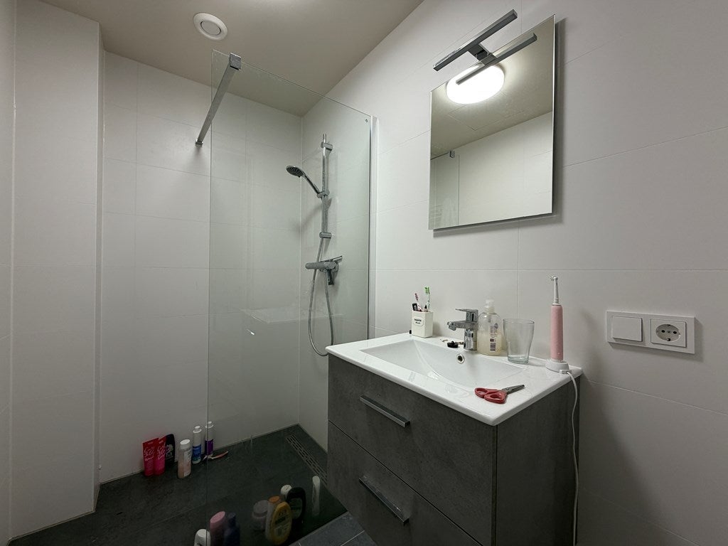 De badkamer bevindt zich op de eerste verdieping en is voorzien van een douche en een wastafel met bijbehorend kastje. Tot slot beschikt de woning over een gemeenschappelijke balkon.