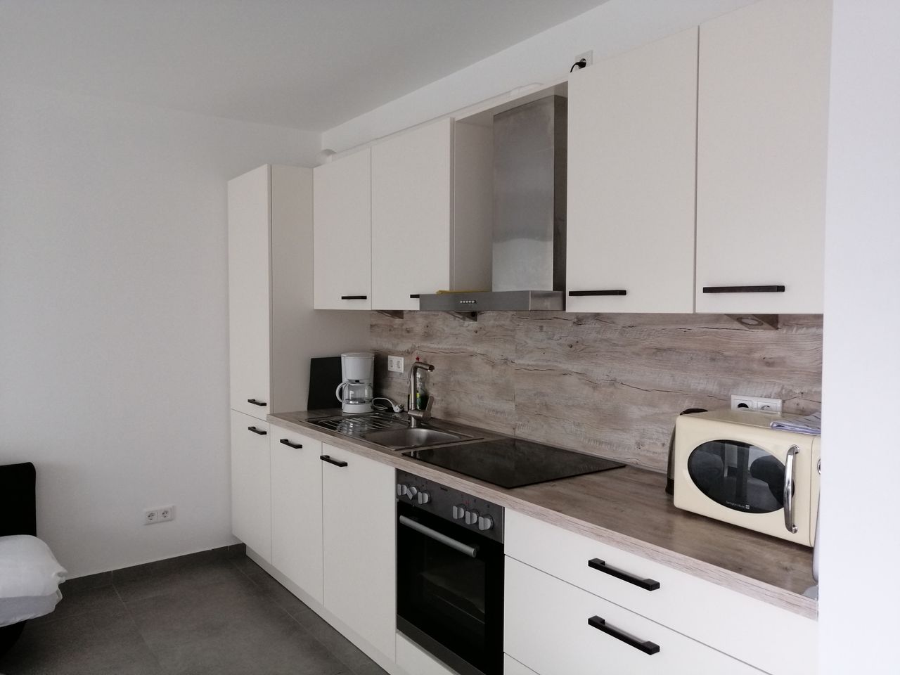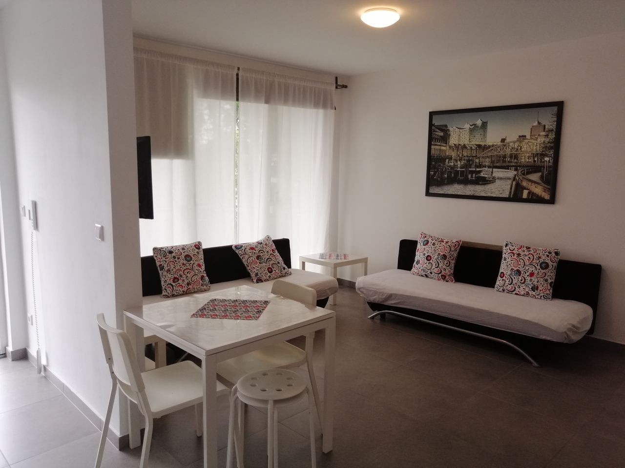 De keuken is verbonden met een open woonkamer. De woonkamer heeft twee slaapbanken, een flatscreen-tv, een tafel en stoelen. De keuken heeft een vaatwasser, koffiezetapparaat, waterkoker, koelkast, magnetron en de meest noodzakelijke kookgerei. De slaapkamer is uitgerust met twee eenpersoonsbedden, een nachtkastje en een kledingkast.