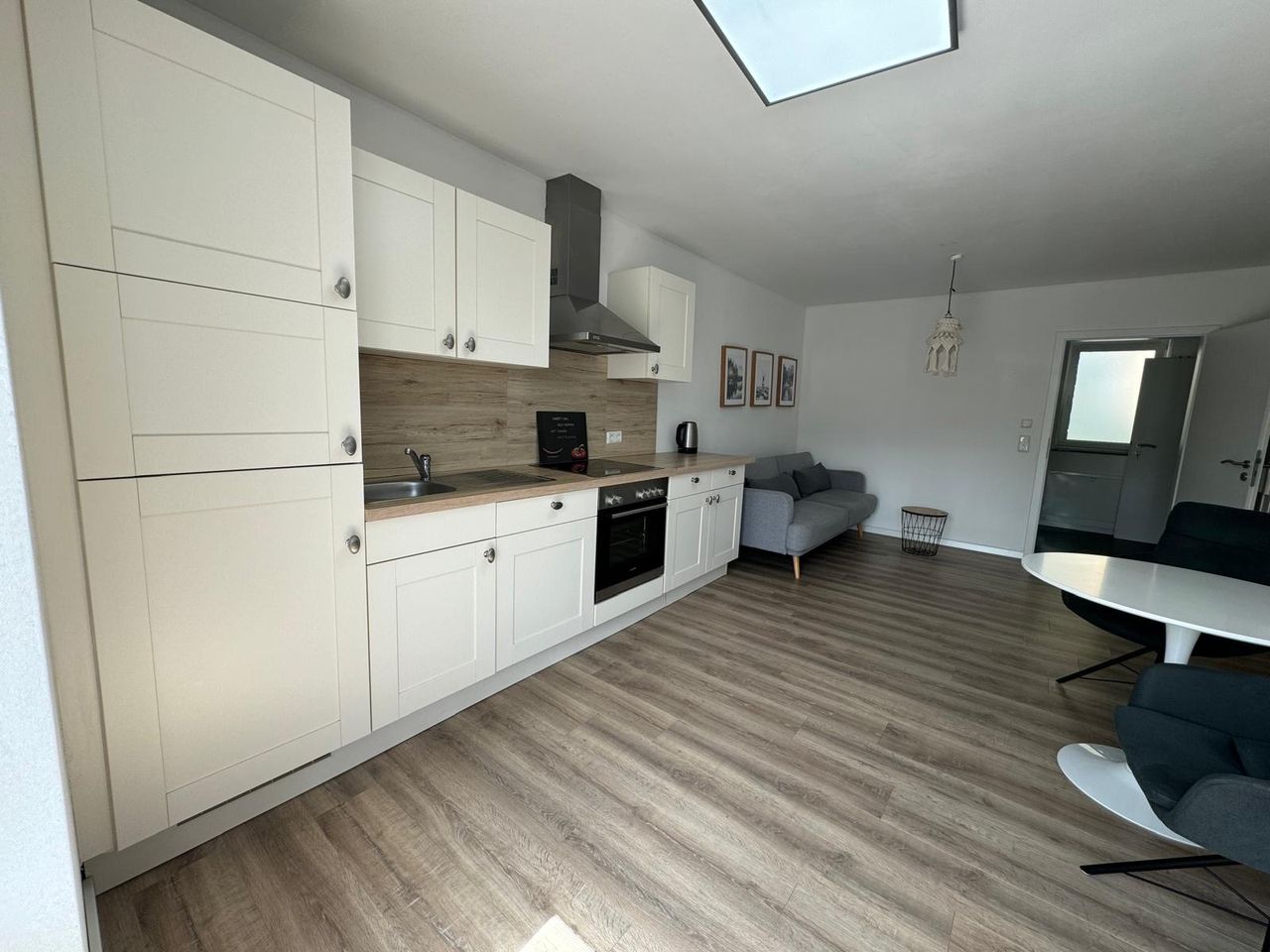 Het appartement biedt een gezellige slaapkamer, een volledig uitgeruste keuken, een woonkamer met een slaapbank en een balkon.