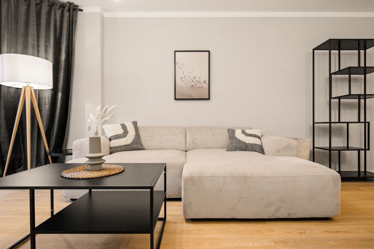 Het hoogwaardig gerenoveerde appartement heeft een uitnodigende woonkamer met een moderne tafel, een comfortabele designbank en een grote tv. Bovendien biedt het appartement een op maat gemaakte keuken met de nieuwste technologie en de bijbehorende volledige uitrusting (koelkast met geïntegreerde vriezer, keramische kookplaat en een grote selectie aan keukengerei) - niets staat een diner voor twee in de weg! Daarnaast nodigt het prachtig gelegen balkon uit om heerlijk te ontspannen en te genieten van de zonuren..