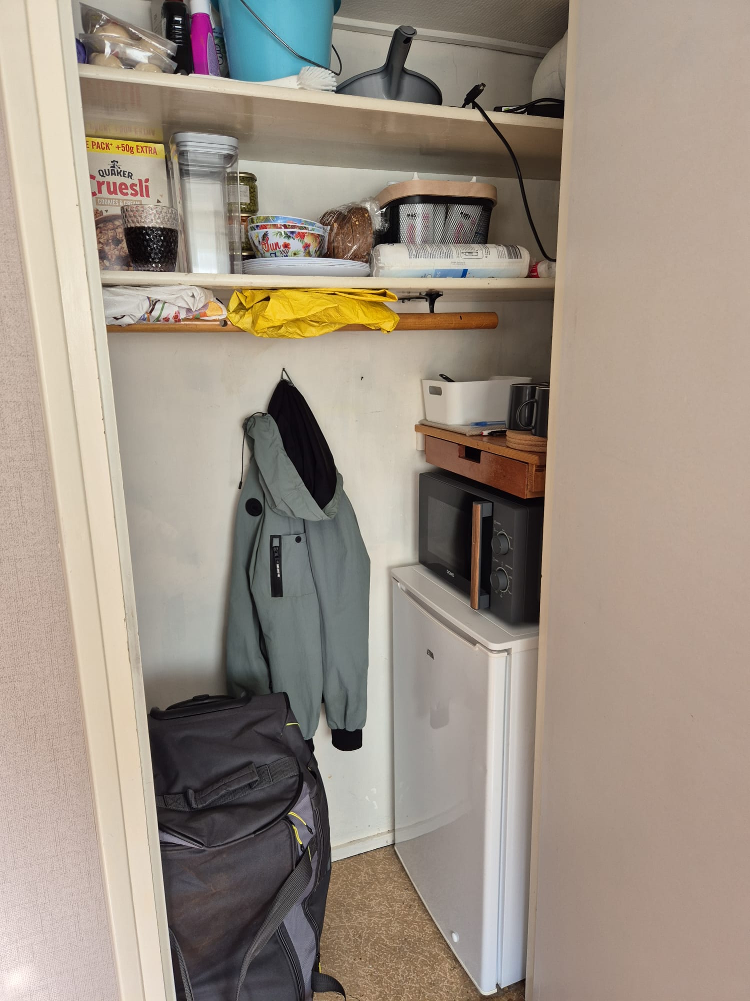 De kamer is dus op de 1ste verdieping je kan rechtstreeks via de voordeur naar boven, er is op de verdieping een toilet de douche is niet groot en moet gedeeld worden, er kan beneden gekookt worden, wel zorgdragen voor eigen pannen enz. Op de kamer bevindt zich een kleine koelkast ( met vriesvakje) deze staat in een kast waar je ook aansluiting hebt om een "eigen" magnetron / koffiezet apparaat of printer neer te zetten.