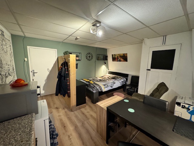 Alle ruimtes op deze verdieping zijn in goede staat. De verdieping beschikt over een inloop douche met mengkraan en over een ruime keuken met elektrische kookplaat. Deze faciliteiten en het toilet deel je met 4 andere op jouw gang. Achter en naast het pand vind je de zeer ruime achtertuin waar je gezellig kunt samen komen met de rest van het huis, en je je fiets kunt stallen onder de overkapping.