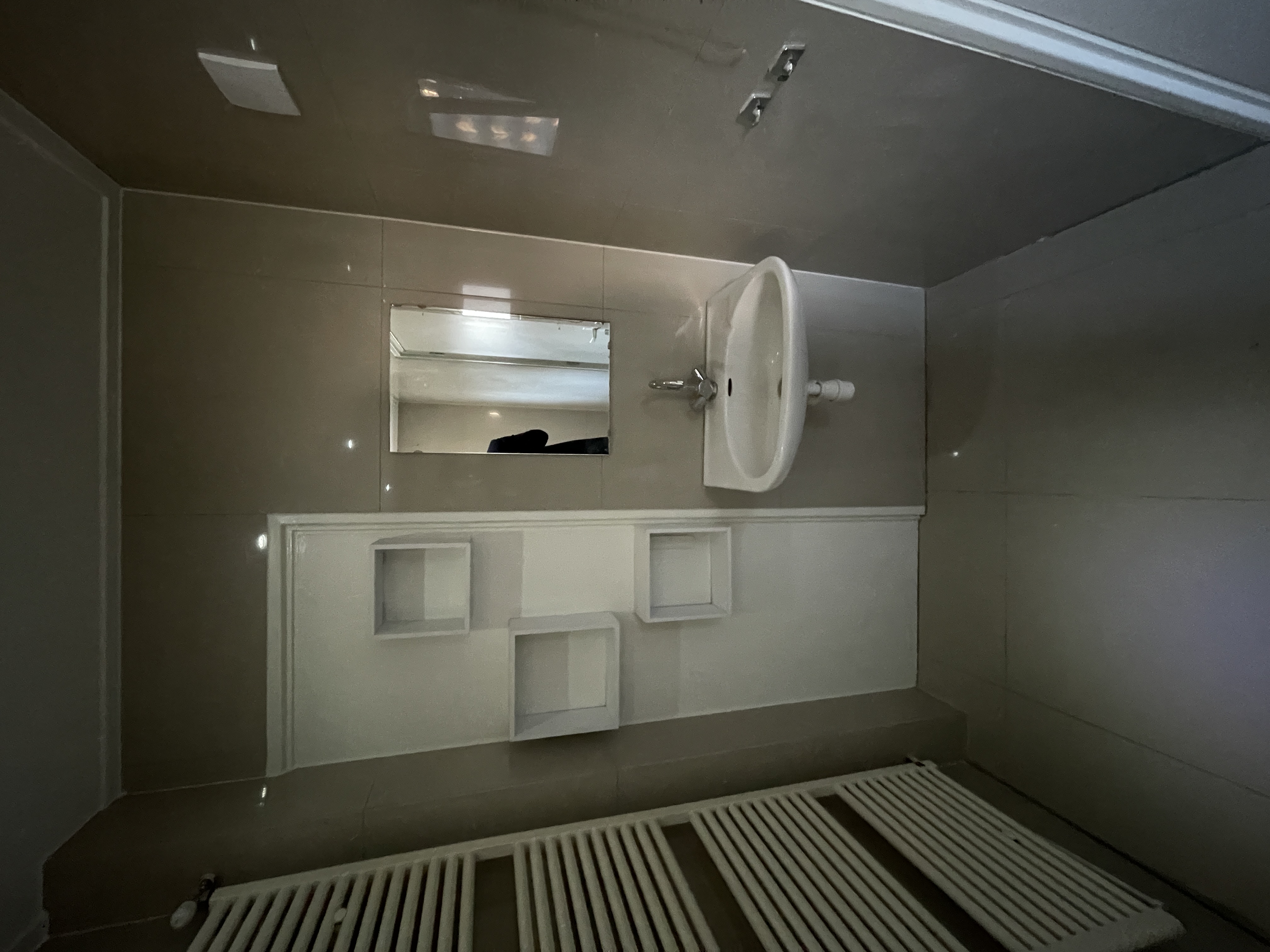 De gemeenschappelijke badkamers zijn voorzien van een douche, wastafel met wastafelmeubel, spiegel en toilet.