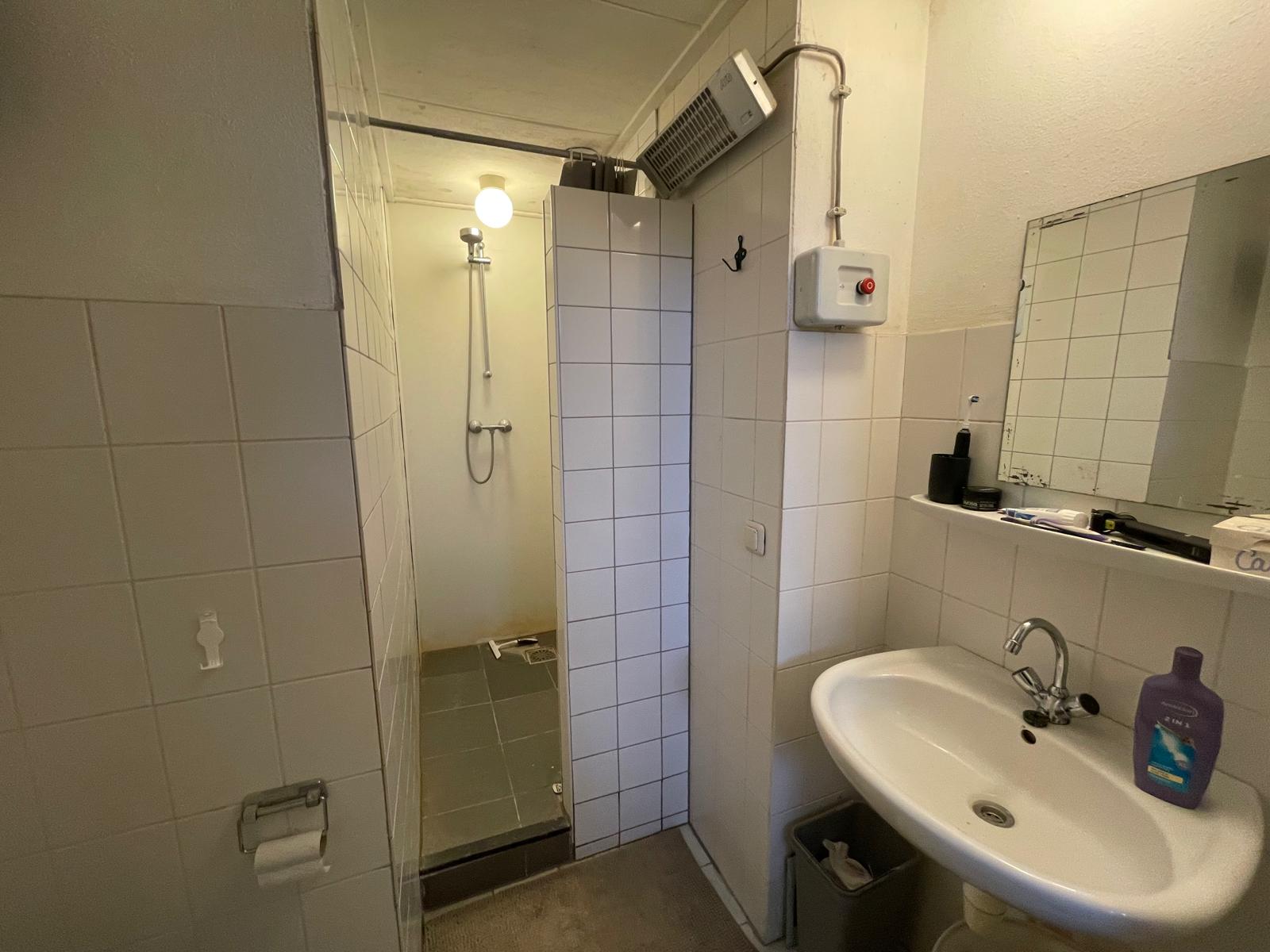 Bij binnenkomst kom je in de hal, die toegang geeft tot de kamer en de gedeelde badkamer. De badkamer is voorzien van een douche, wastafel en toilet en wordt gedeeld met één mannelijke huisgenoot. De kamer heeft een oppervlakte van circa 21 m² en beschikt over een eigen keuken met koelkast, gasfornuis en afzuigkap.