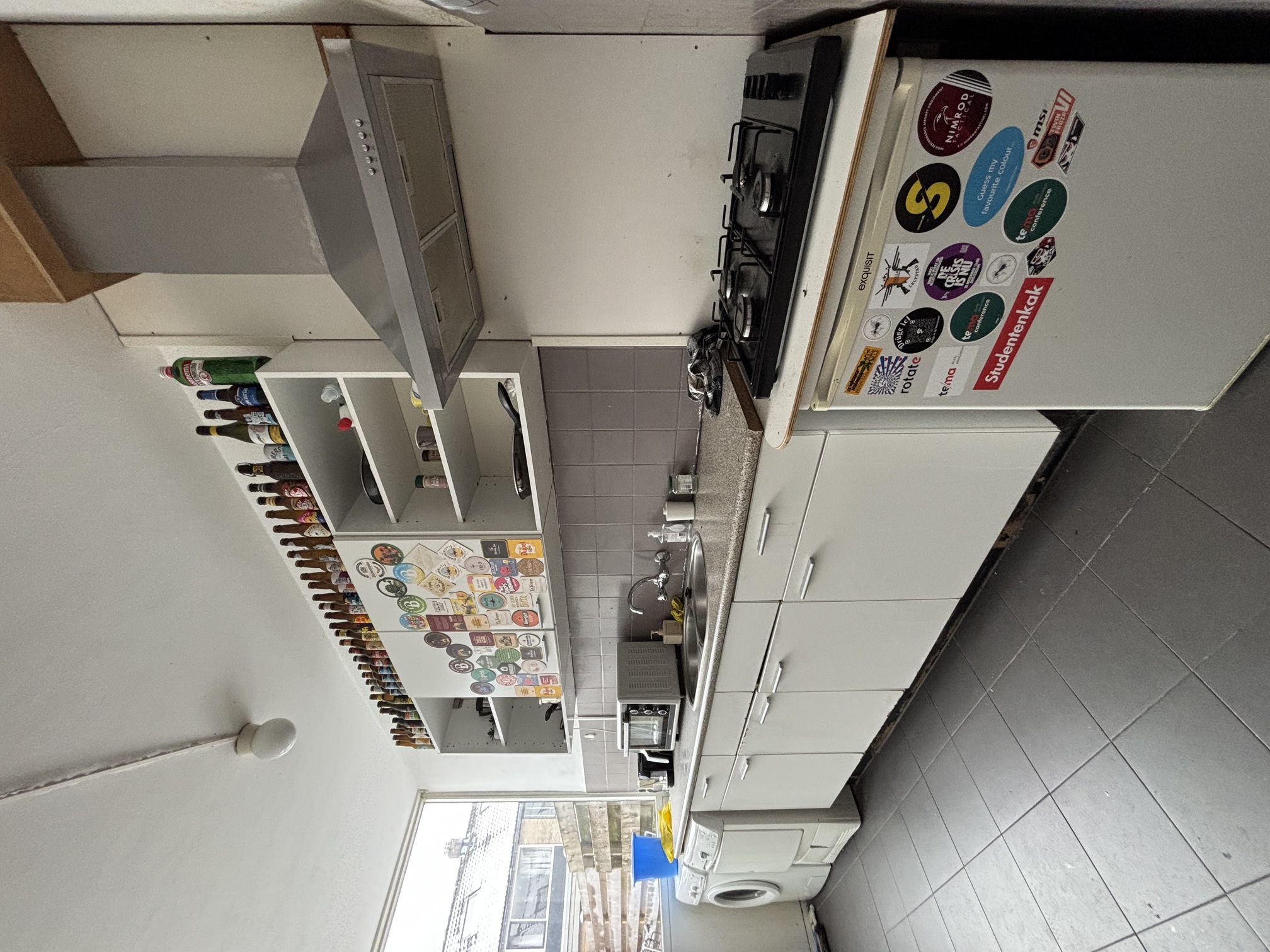16m²) te huur. Het is gesitueerd op de eerste etage aan de achterzijde van de woning. De kamer is voorzien van een eigen wastafel en centrale verwarming. De keuken, douche en toilet worden gedeeld met de medebewoners.