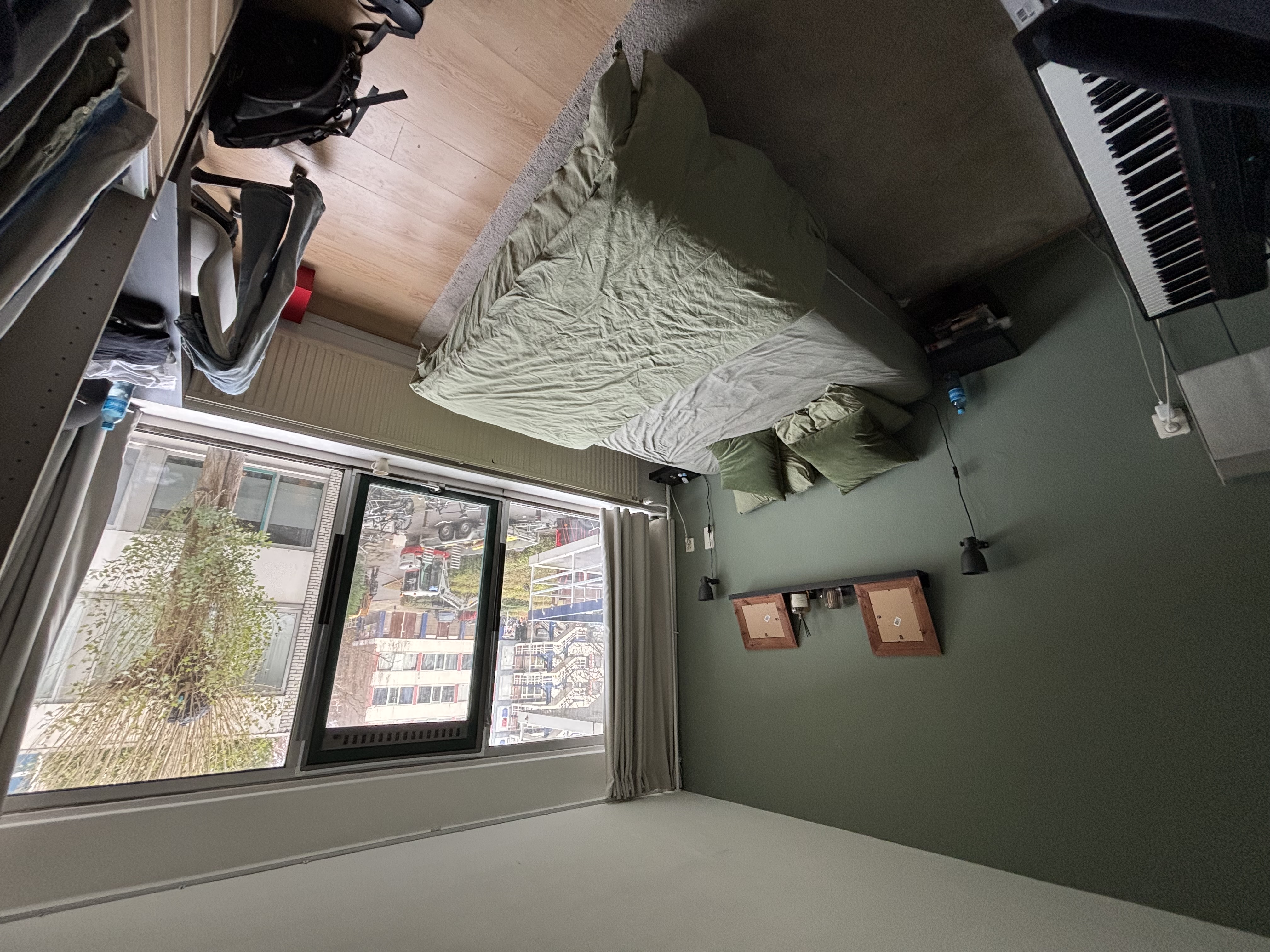 De kamer is 12 vierkante meter, en kost ongeveer 400 euro per maand.