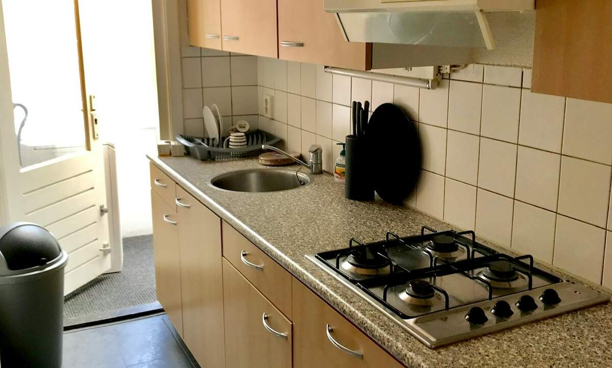 U deelt de badkamer, keuken en balkon