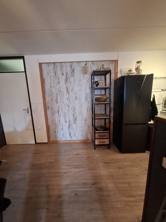 Bij binnenkomst is aan de linkerhand de entree naar een kamer, die in te richten is als tweede slaapkamer of werkkamer. De tussenwand tussen deze kamer en de woonkamer is demonteerbaar. Gaat u rechtdoor in de hal, dan komt u in de ruime woonkamer met open keuken in hoekopstelling welke is voorzien van een oven, 4 pits fornuis, oven en afzuigkap. Vanuit de woonkamer heb je eveneens toegang tot de loggia van ca 3 m2.