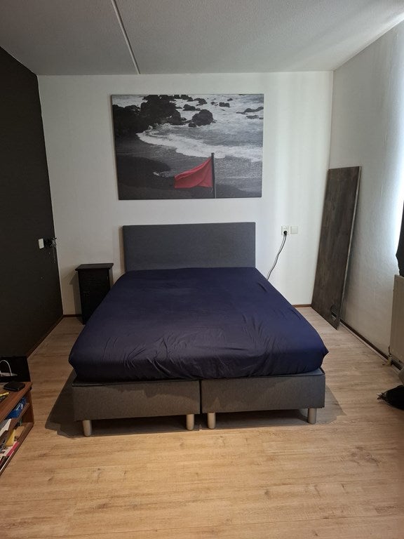 Vanuit de tweede hal bereikbaar vanuit de woonkamer heb je verder nog toegang tot de badkamer met bad en wastafel, separaat toilet, berging met wasmachine aansluiting en de ruime slaapkamer van ca 13 m2.