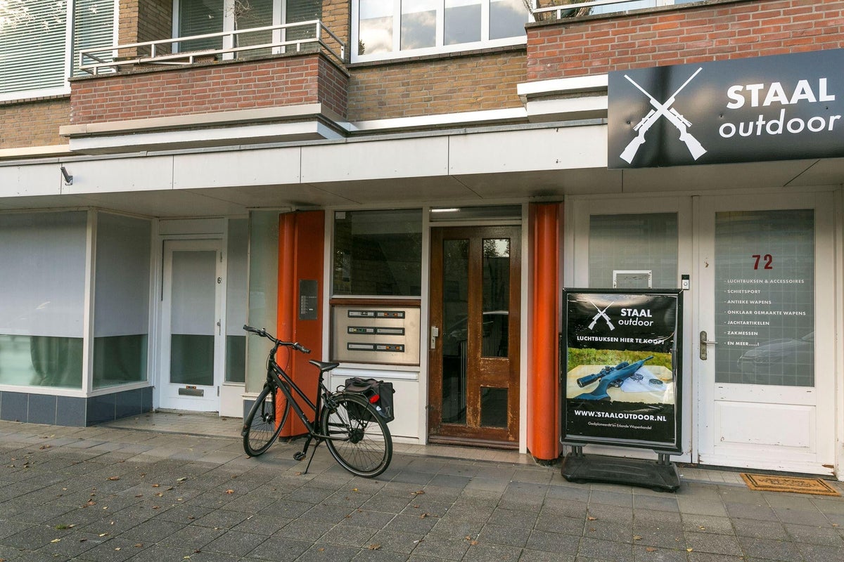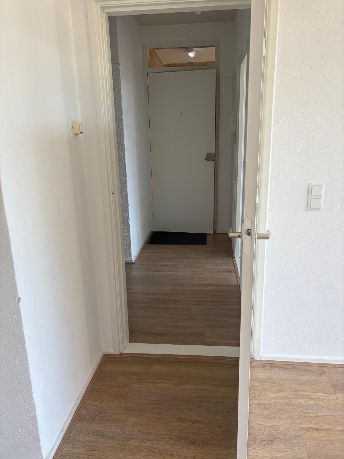 Centrale entree met intercom, trap naar 3e verdieping, entree appartement, hal met toilet en badkamer. Vanuit de hal heeft u toegang tot de (en-suite) woonkamer, via de suitedeuren komt u in de eetkamer (met balkon) en keuken.