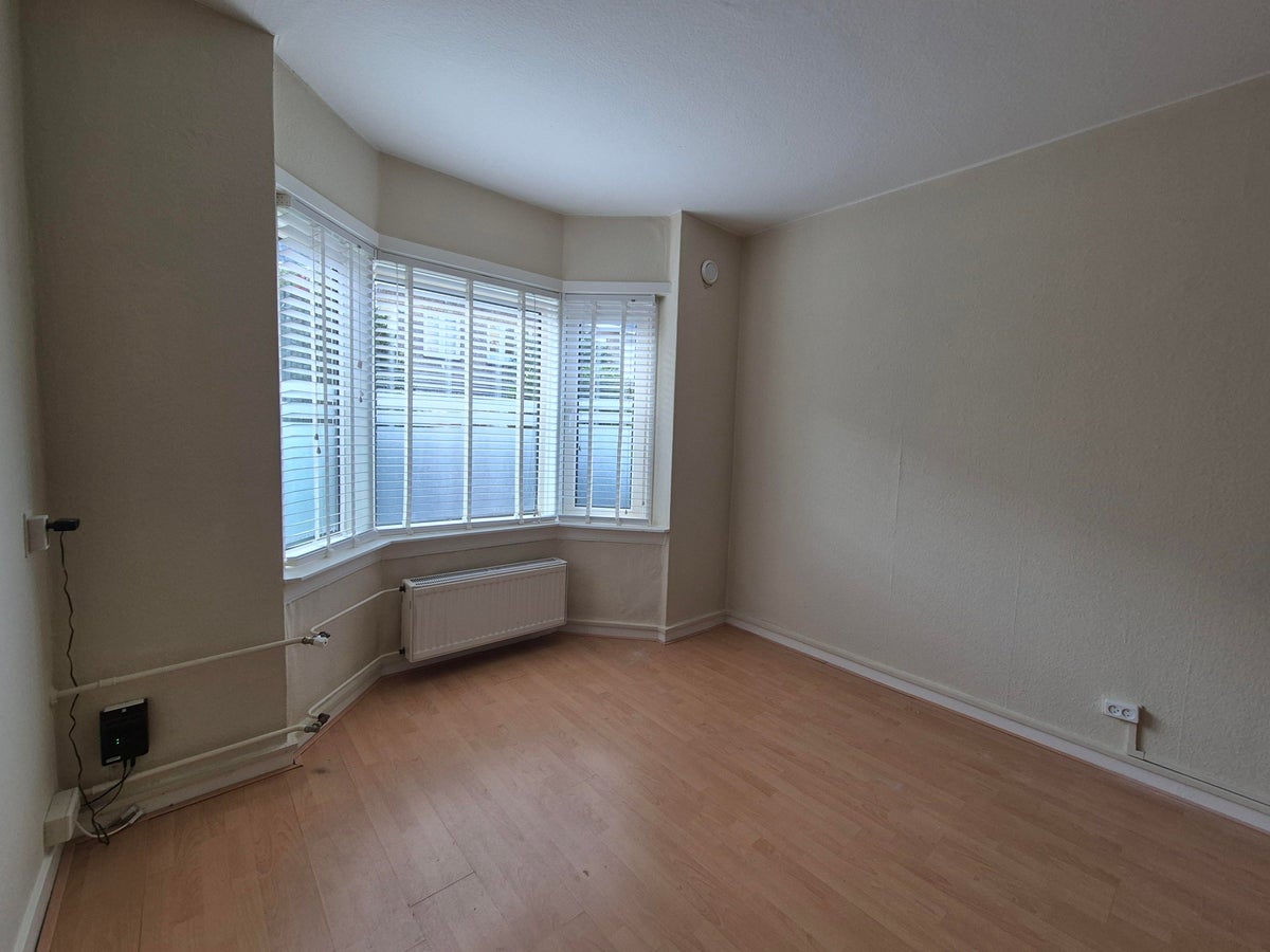 De kamer van 12m2 heeft een sfeervolle erker met zicht op de voortuin. Op de begane grond is een gezamenlijke keuken, toilet, wasmachine en toegang tot de achtertuin.