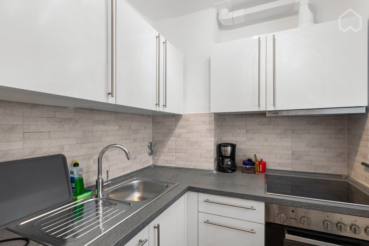 De moderne en hoogwaardige inbouwkeuken biedt u alles wat u nodig heeft om te koken en te genieten van de keuken. Er is ook een Neff-vaatwasser. Oven, gasfornuis, koffiezetapparaat, pannen en alles wat bij keukenapparatuur hoort is aanwezig. Tevens heeft u gratis toegang tot de wasmachine, gunstig gelegen in de inbouwkast van het appartement.