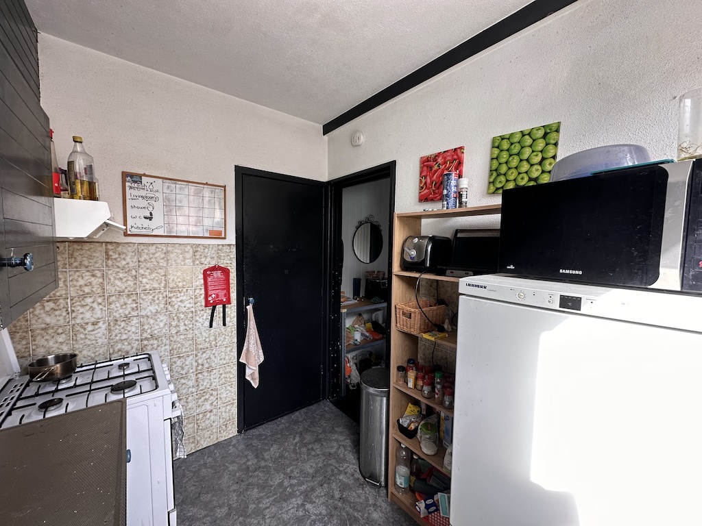 Er is een gezamenlijke woonkamer, keuken, badkamer, separaat toilet, balkon, ruime hal en voorraadhok. Alle kamers zijn voorzien van vloerbedekking/laminaat.