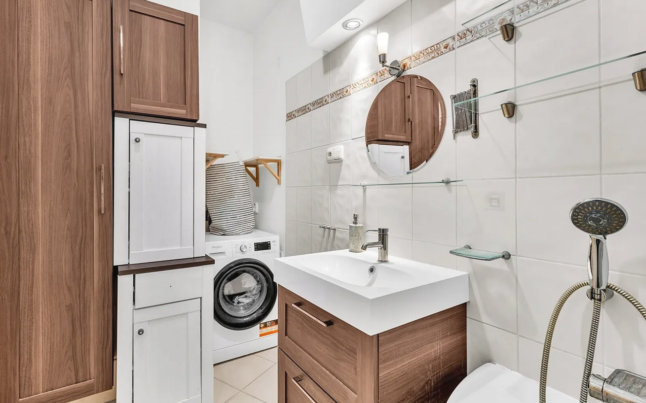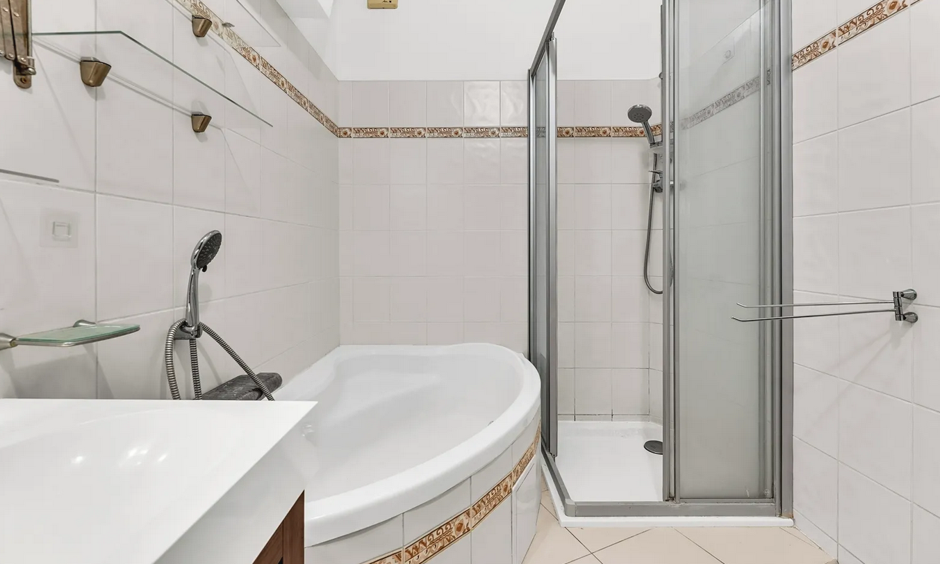 Vanuit de hal is er een aparte ingang naar de badkamer, en het toilet is ook apart. Het appartement is perfect voor gezinnen en "huisgenoten"..