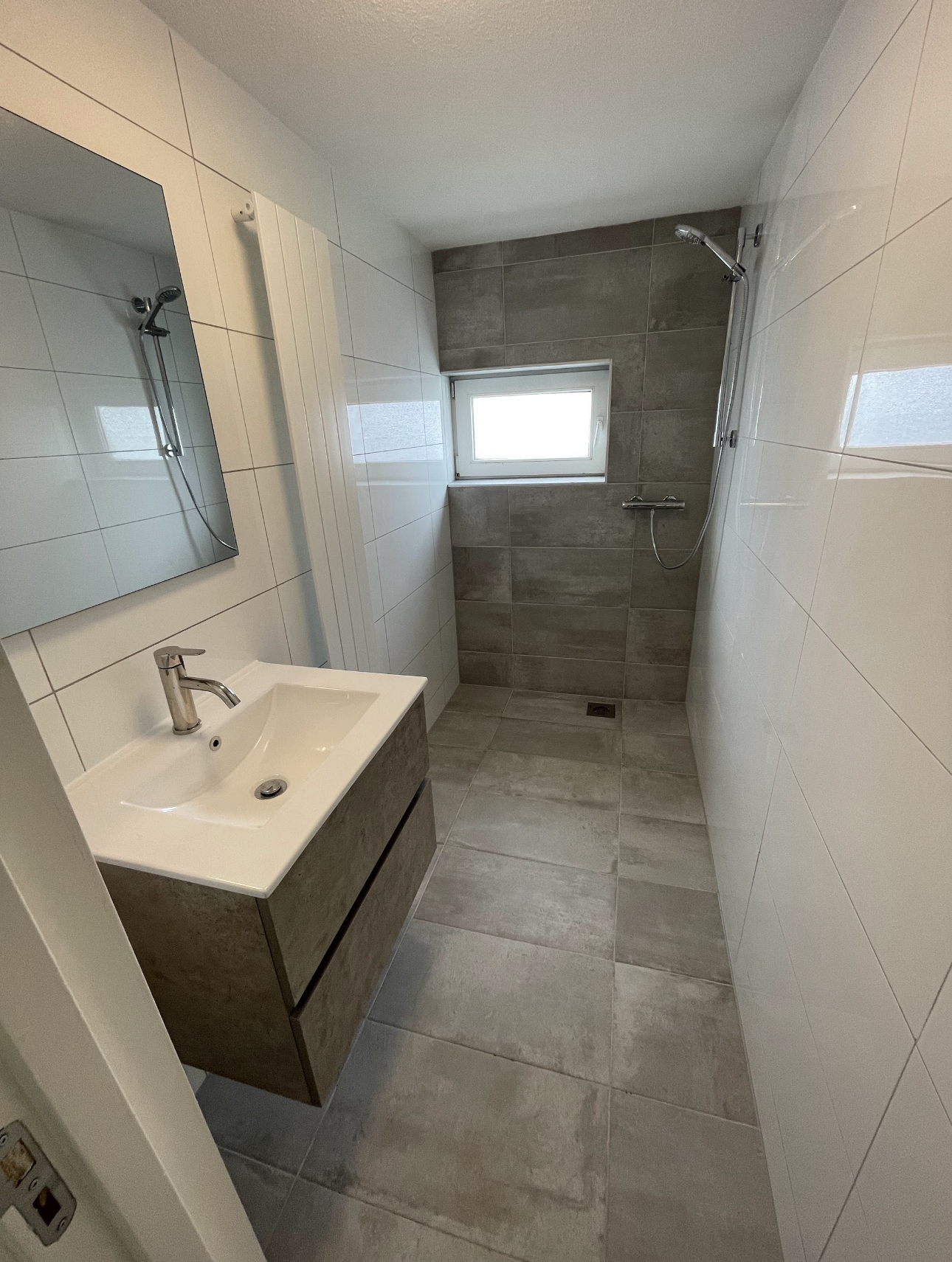 De twee gemeenschappelijke badkamers zijn voorzien van een douche, wastafel met wastafelmeubel, spiegel met verlichting en toilet.