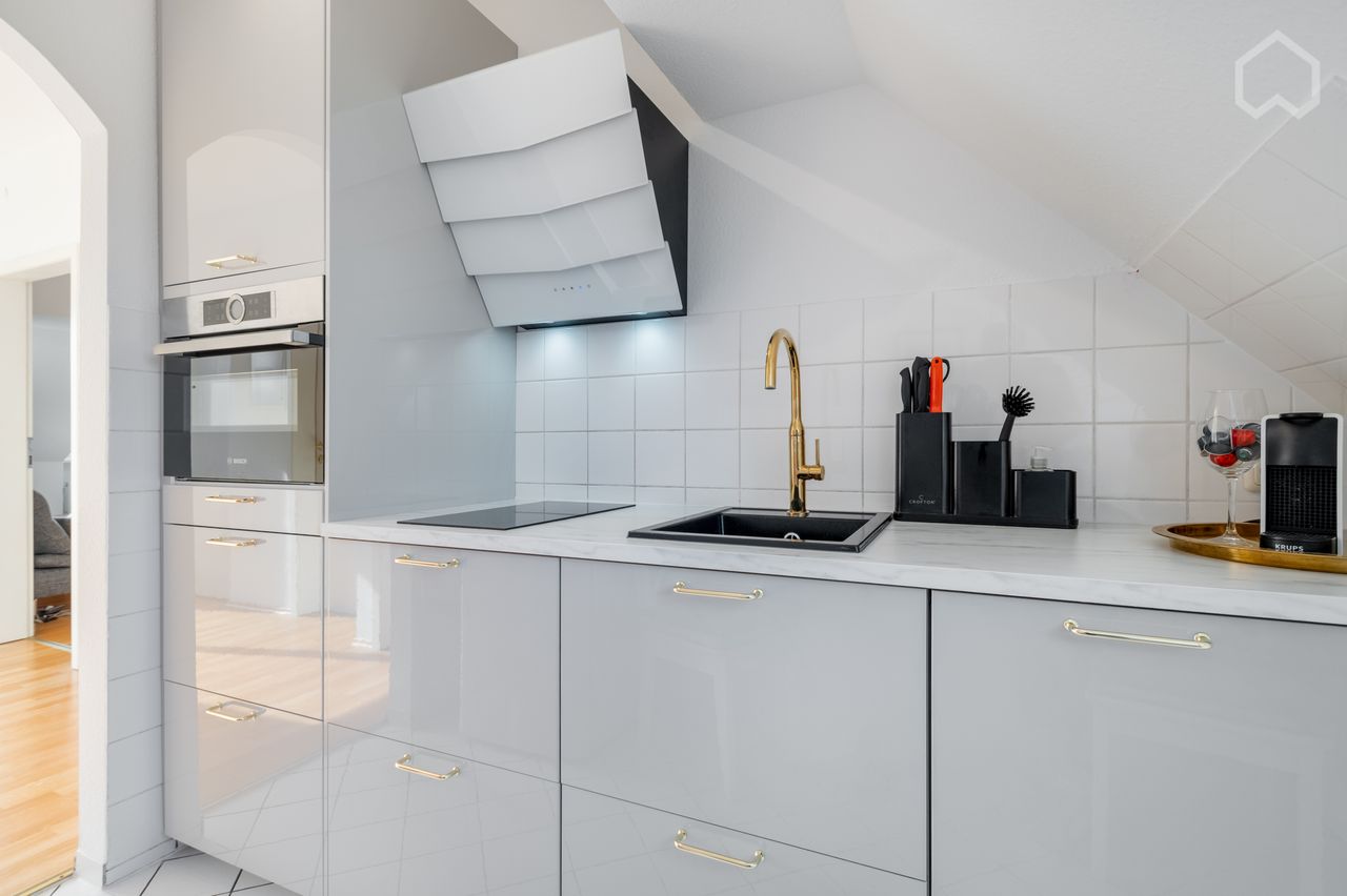 * Volledig uitgeruste keuken met Bosch combi-oven (geïntegreerde magnetron) en vaatwasser.