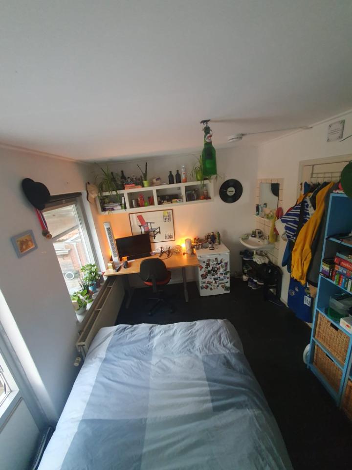 Het huis beschikt over een gezamenlijke woonkamer, keuken, douche en een grote achtertuin op het zuiden (met een lounge set waar we heerlijke bbq's houden met biertjes en wijntjes). De kamer is circa 12m2.