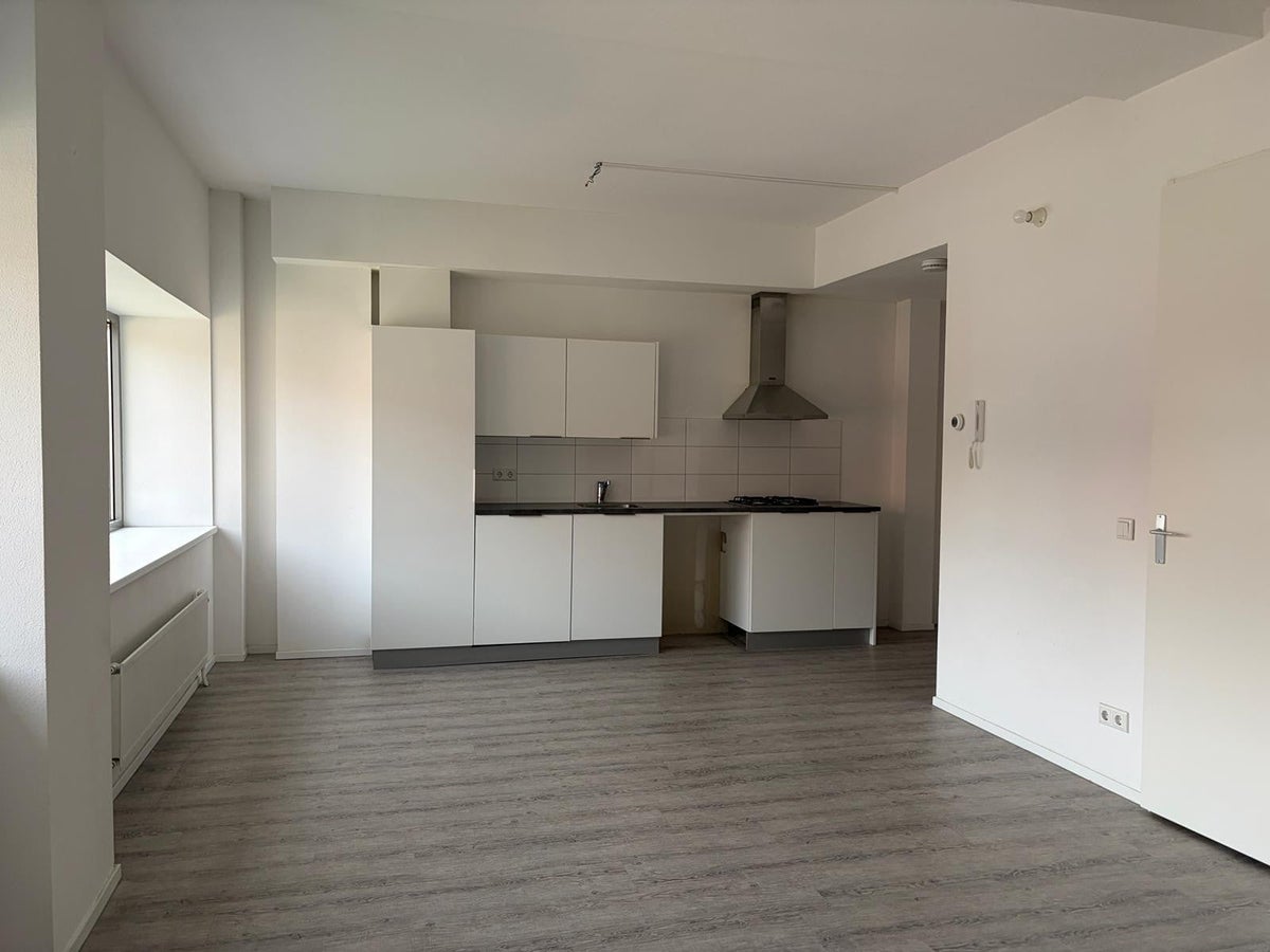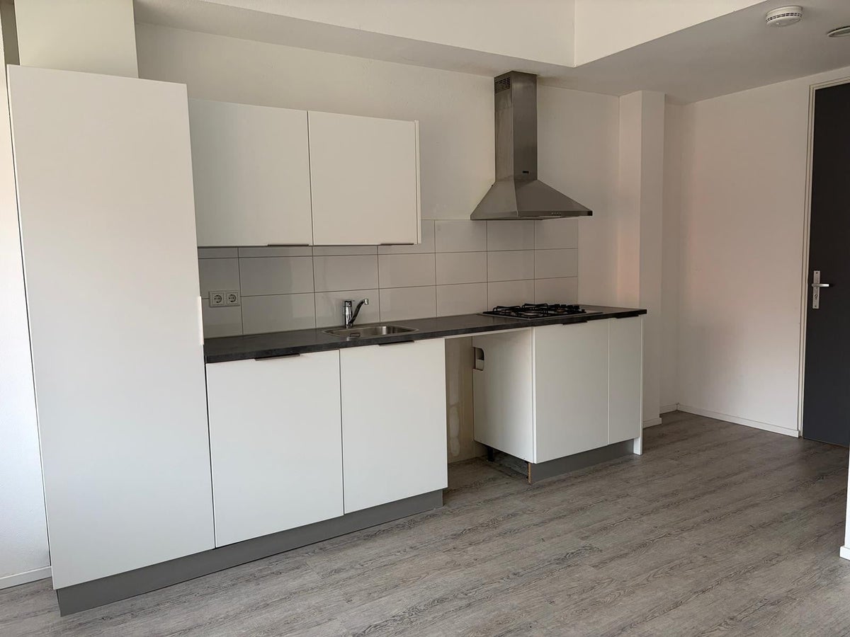 De woon-/slaapkamer is voorzien van een open keuken in lichte kleurstelling. De keuken is voorzien van een kookplaat met afzuigkap en spoelbak verder is er ruimte voor het plaatsen van een koelkast.