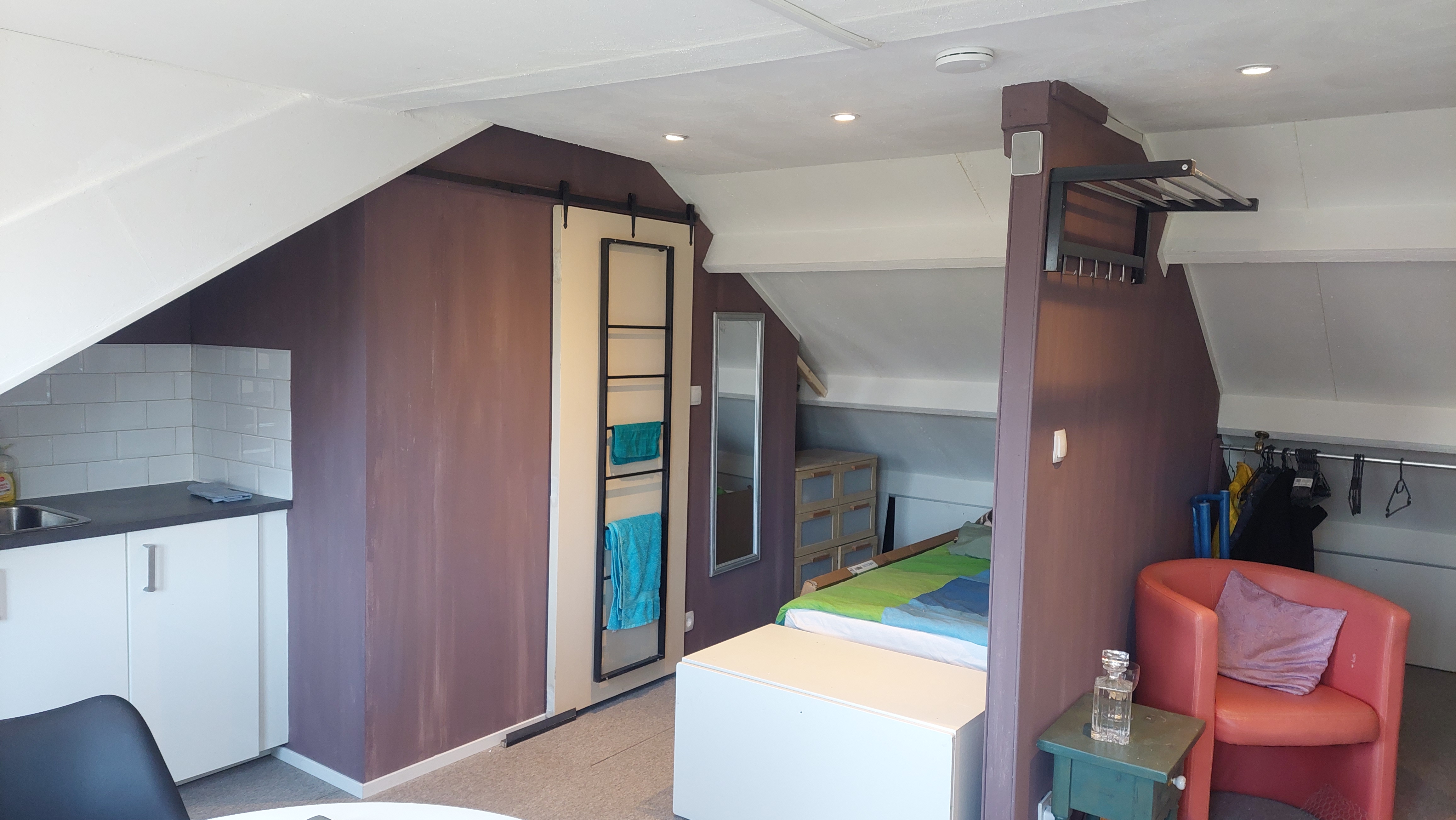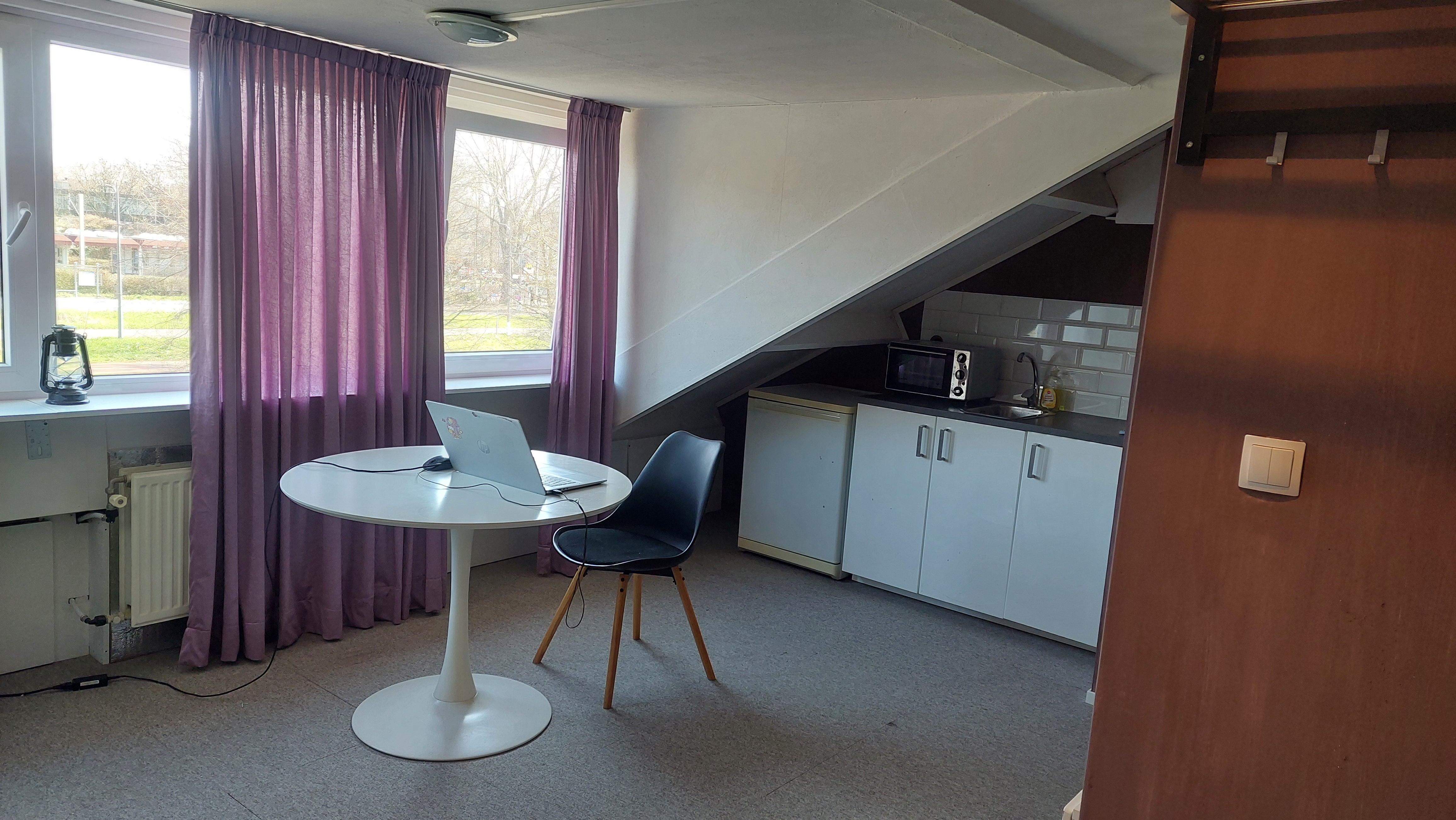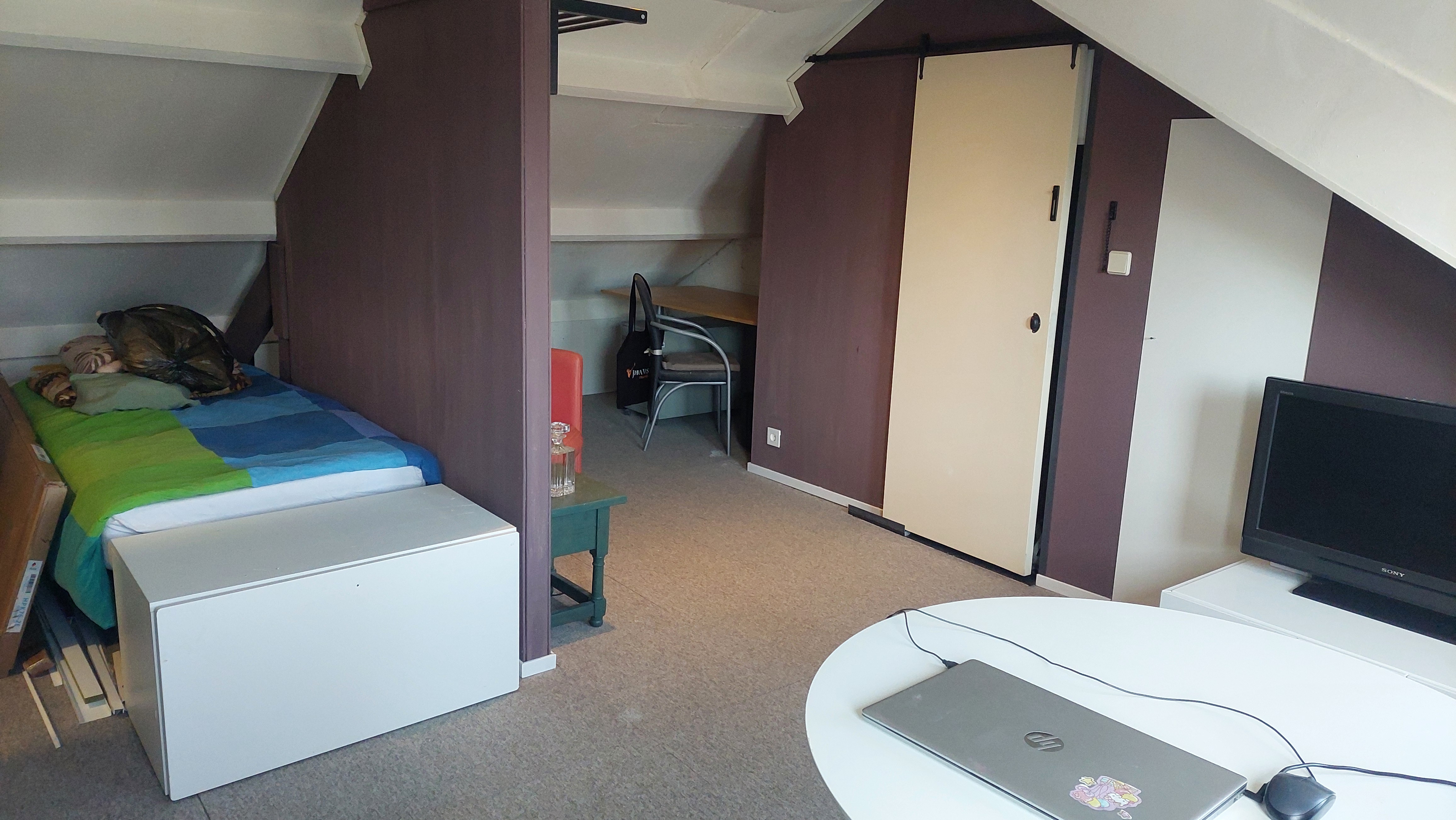De zolderkamer is ideaal voor iemand die rustig wil wonen in een nette woning. De andere drie huurders wonen op de eerste verdieping en zijn alle drie rustig en netjes..