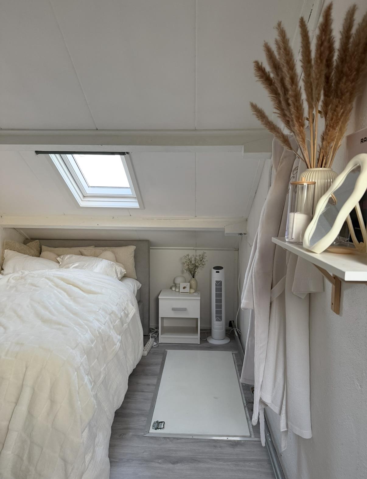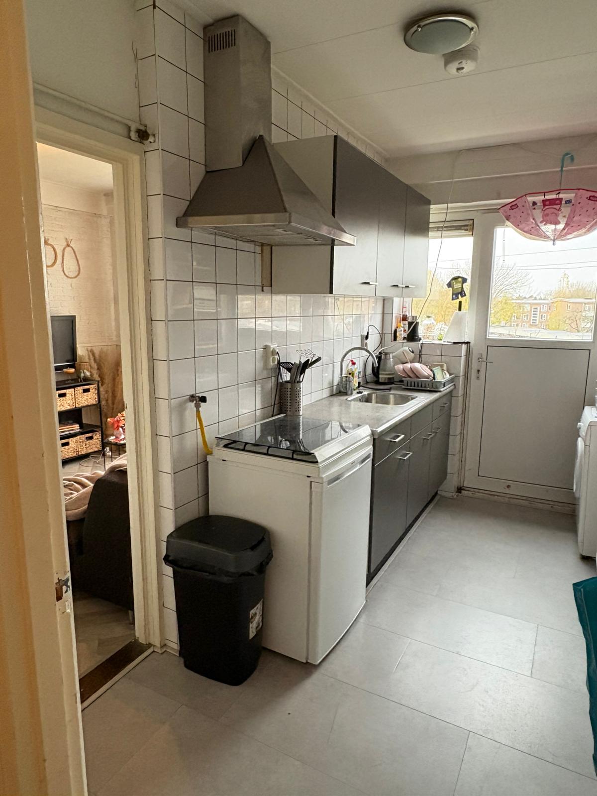 π De kamer heeft een apart slaapgedeelte boven en een woongedeelte beneden. Verder delen wij met z'n 3en een keuken en een badkamer. Ons huis ligt op 5 minuten fietsen van NHL stenden, 7 minuten fietsen van de stad en verschillende supermarkten op 5 minuten fietsen.