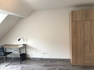 De zeer lichte kamer, die per 1 juli beschikbaar is, is 13m2 en uitgerust met een 2-persoonsbed, bureau en kledingkast en stoffering.