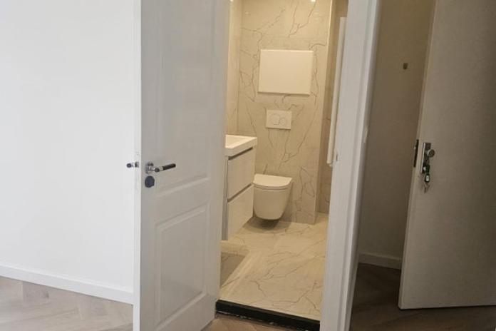 Via de gemeenschappelijke entree op straatniveau betreedt u met de privévoordeur het appartement op de eerste etage.