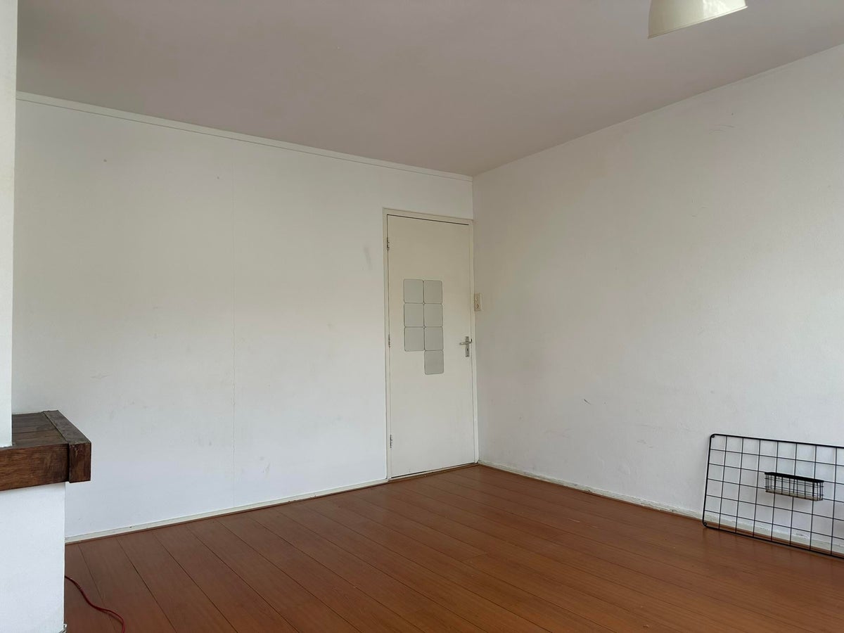 Ruime studentenkamer, waarbij de keuken en badkamer en balkon worden gedeeld met drie huisgenoten.