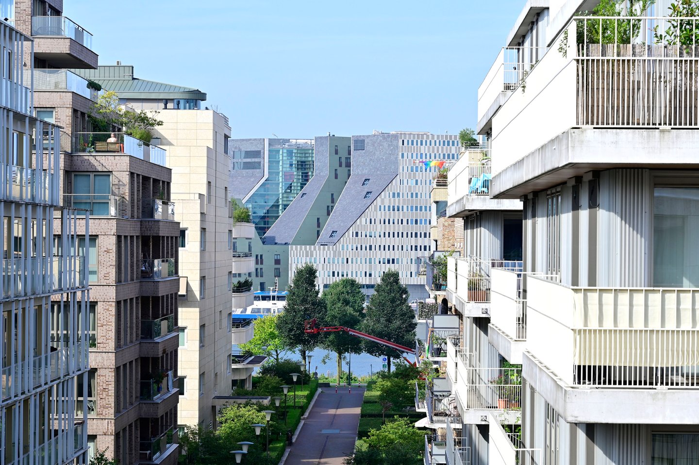 It is located in the apartment complex "De Cube" in the Overhoeks residential area (Amsterdam North). Within walking distance of the ferry, which takes you across the IJ to Amsterdam Central Station in just a few minutes-bringing you right into the heart of the city.