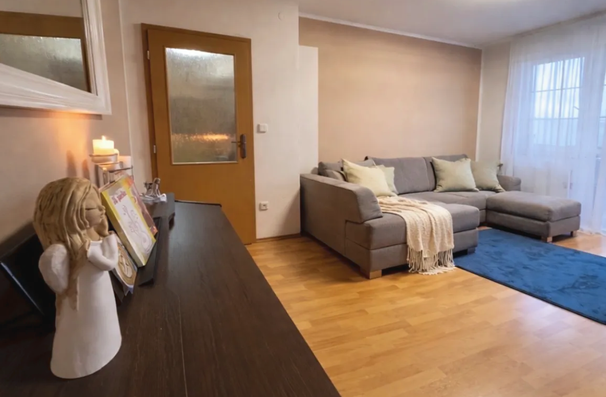 Een royale woonkamer met balkon, een grote kinderkamer, opgedeeld in een dag- en een nachtgedeelte om te ontspannen. Een ruime hal met voldoende opbergruimte en een slaapkamer voor de ouders. Het appartement beschikt over een balkon van 7 m² en een terras, die een veilige buitenruimte bieden om te spelen en te ontspannen, evenals een ruime kelder voor het opbergen van fietsen en kinderspullen.