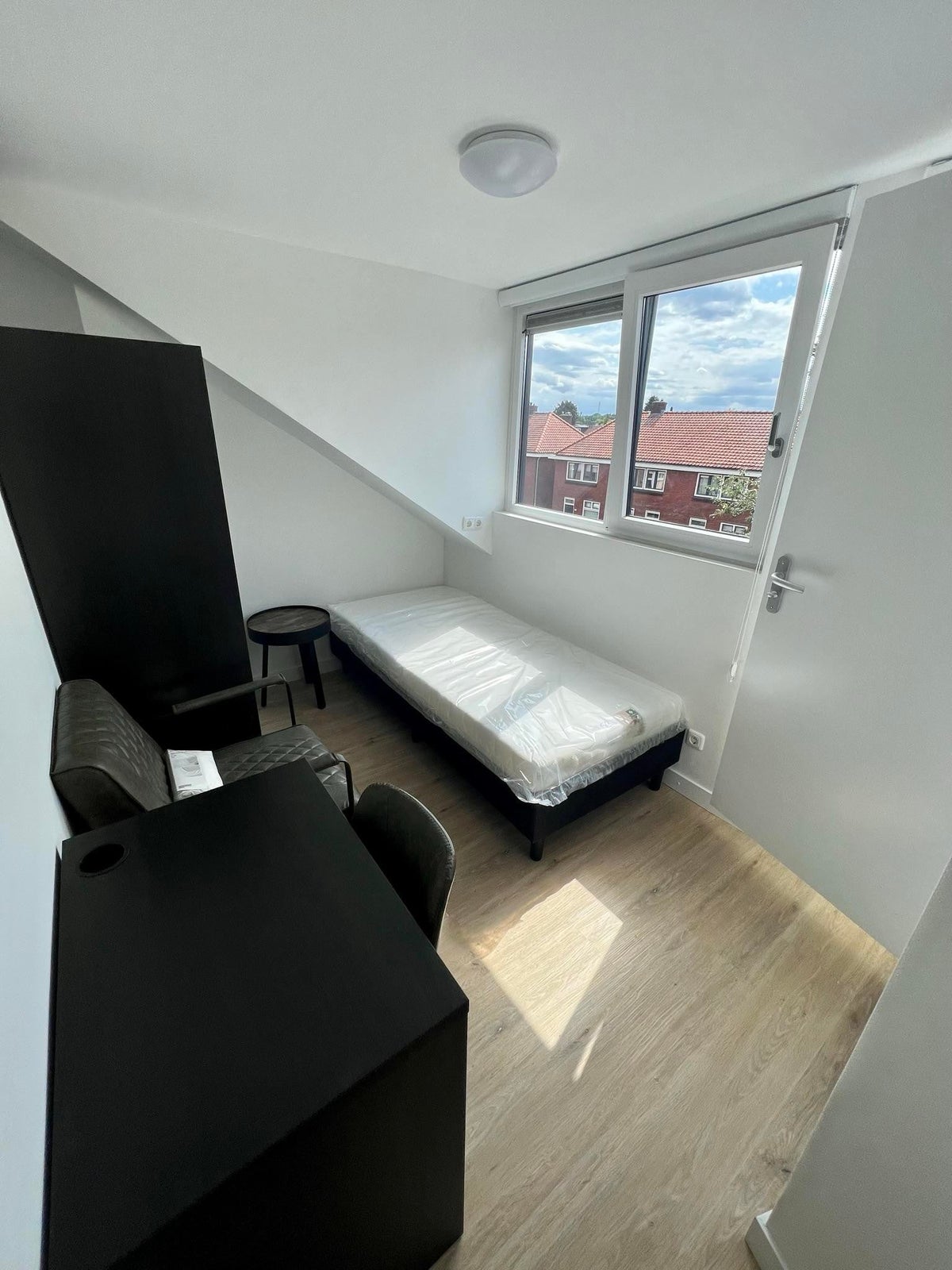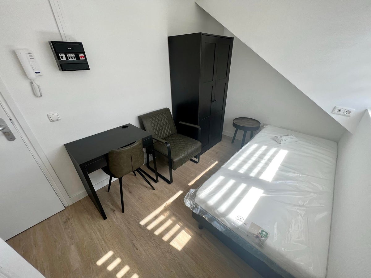 Je kunt er direct in en de kamers worden GEMEUBILEERD opgeleverd! Met eigen hoogwaardige boxspring, kledingkast, matras etc.