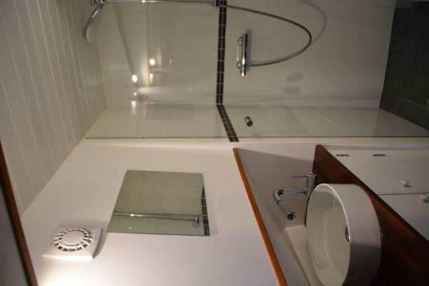 This very special apartment has a tiny kitchen. 2 sleeping rooms, both with double beds.The bathroom has a shower.