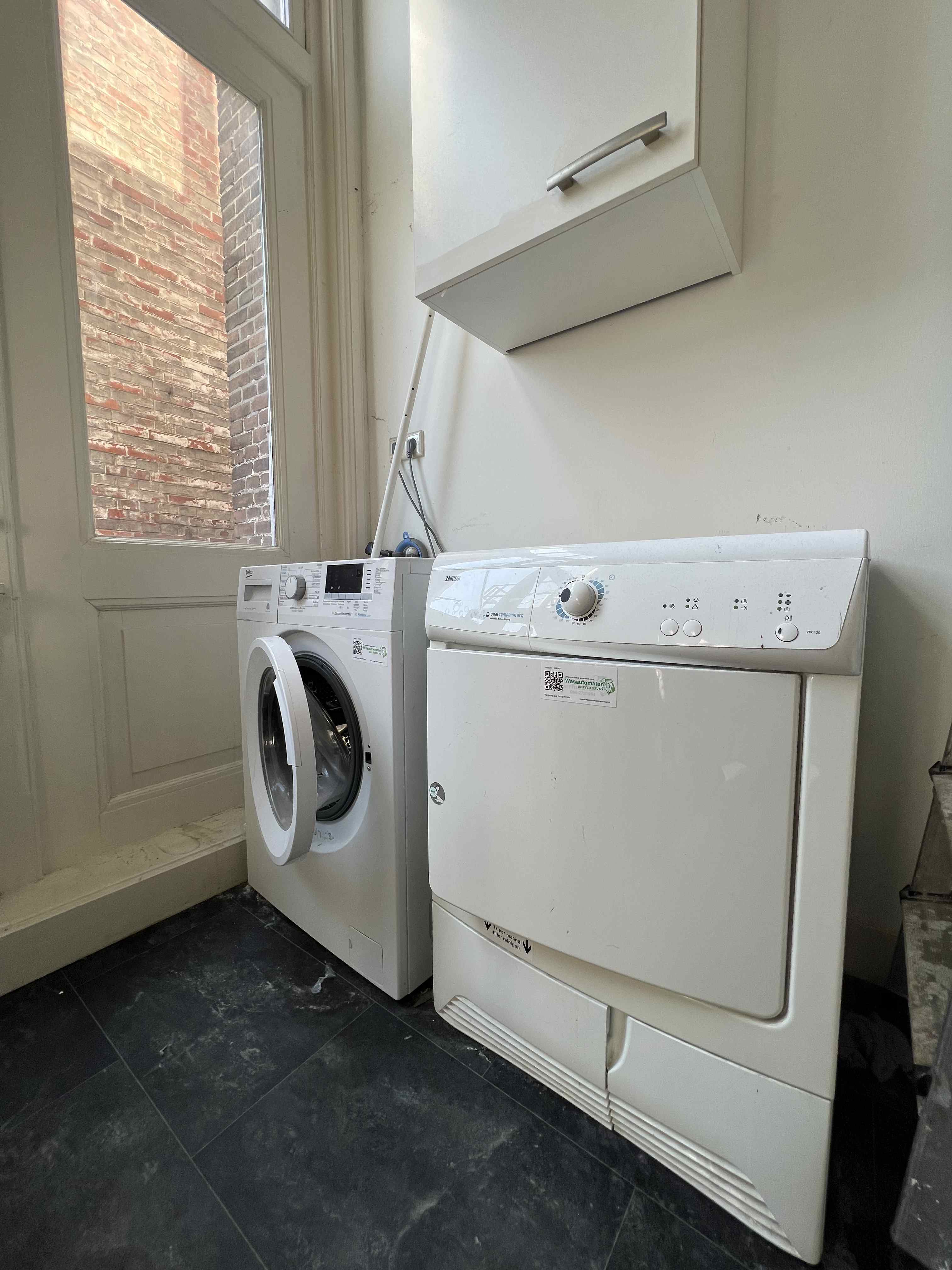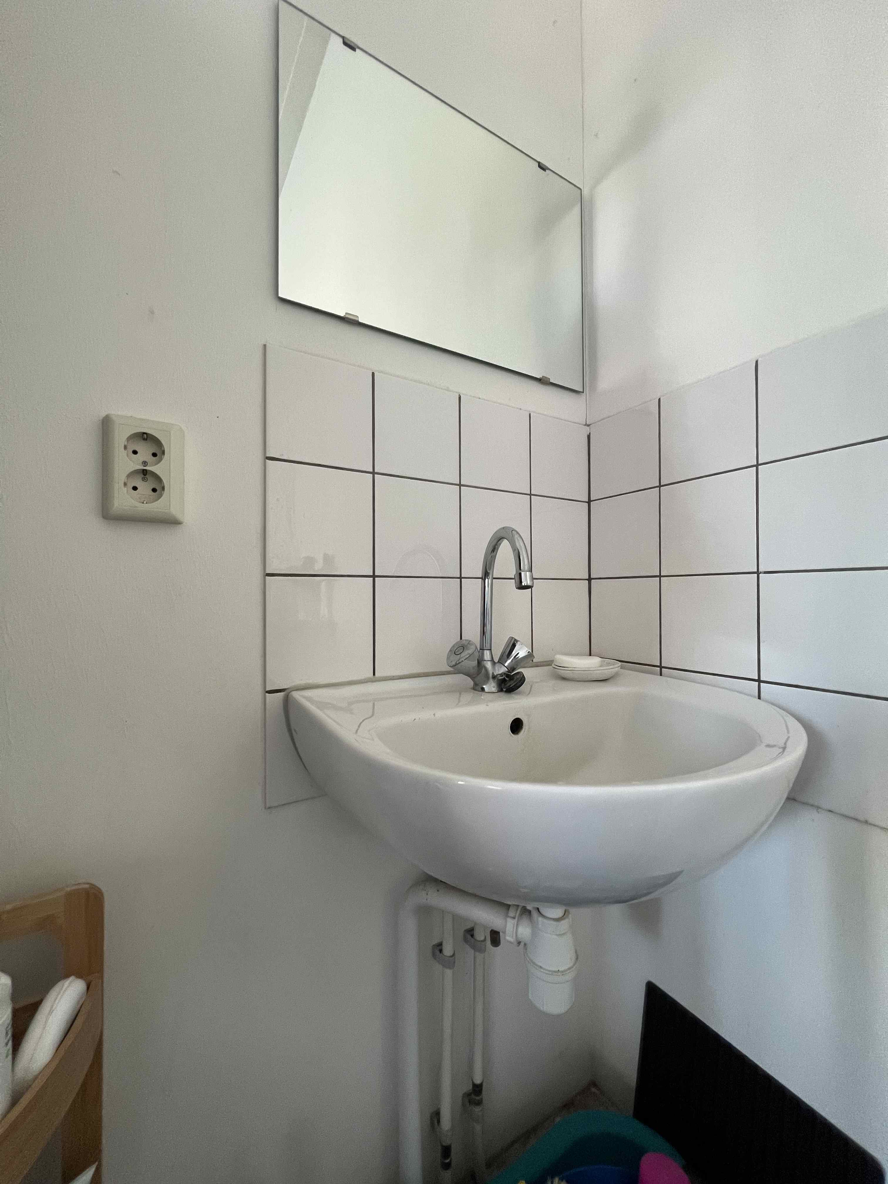 De douche en toilet worden gedeeld met de medebewoners. Ook zijn er gemeenschappelijke wasmachines en drogers aanwezig.