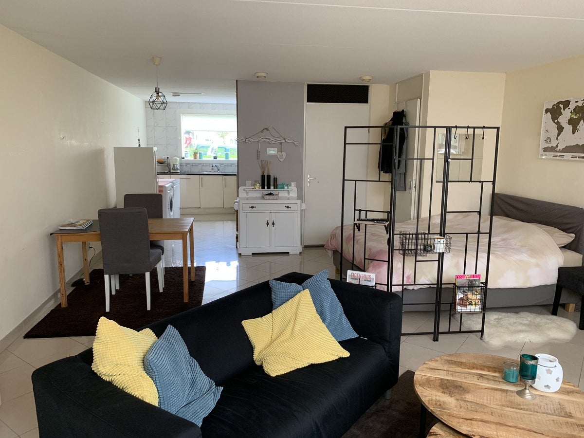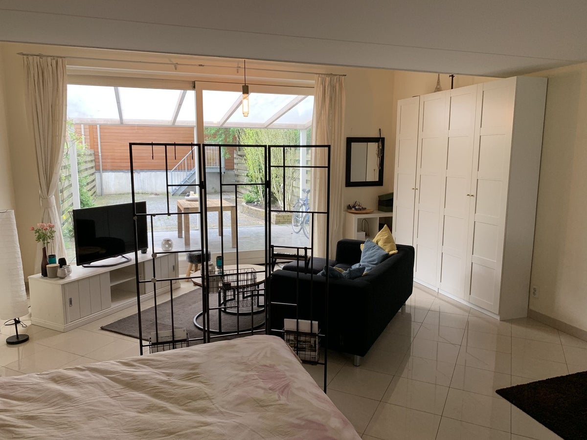 Grote semi zelfstandige studio van 44m2 met eigen keuken en grote tuin!