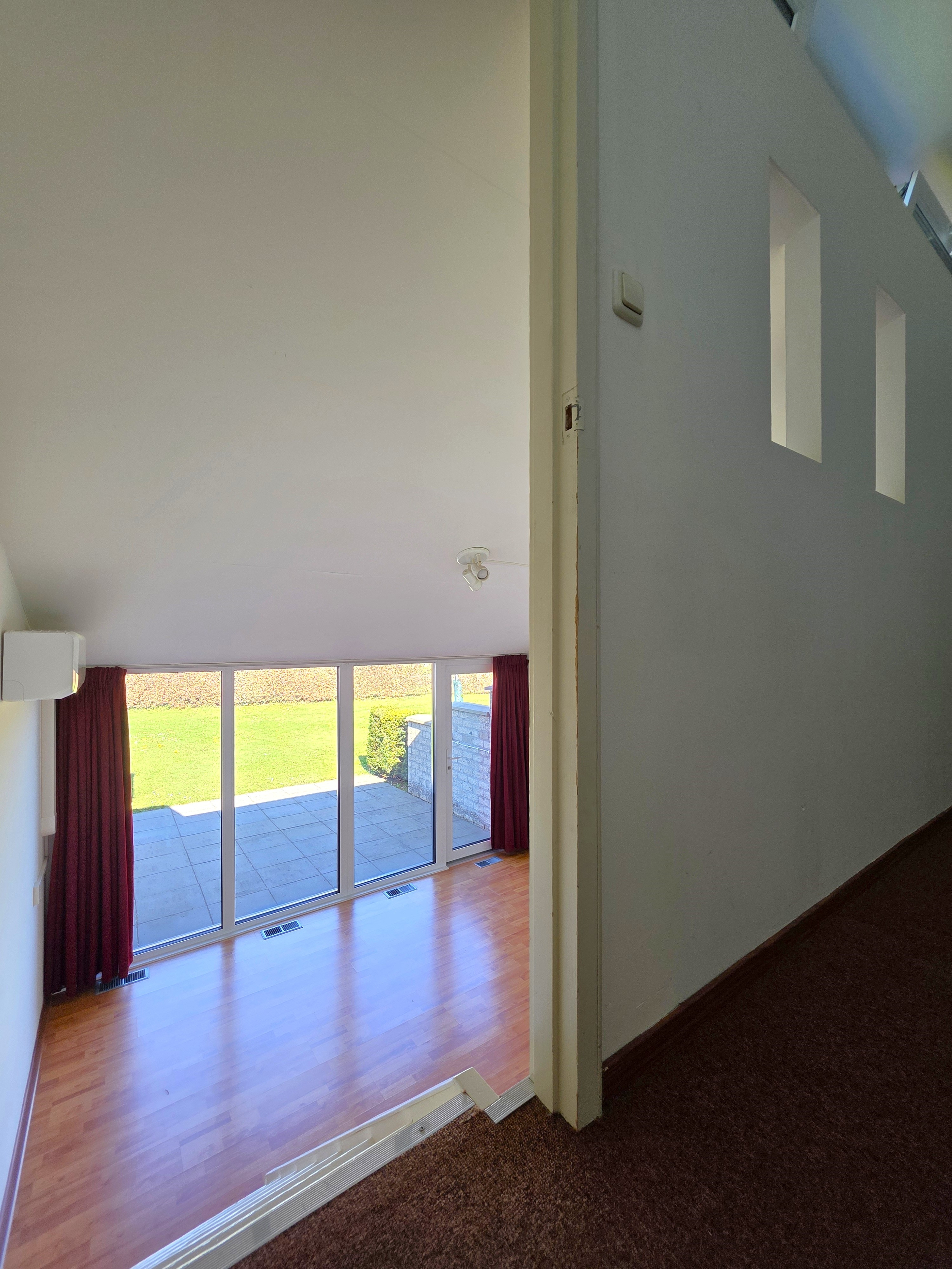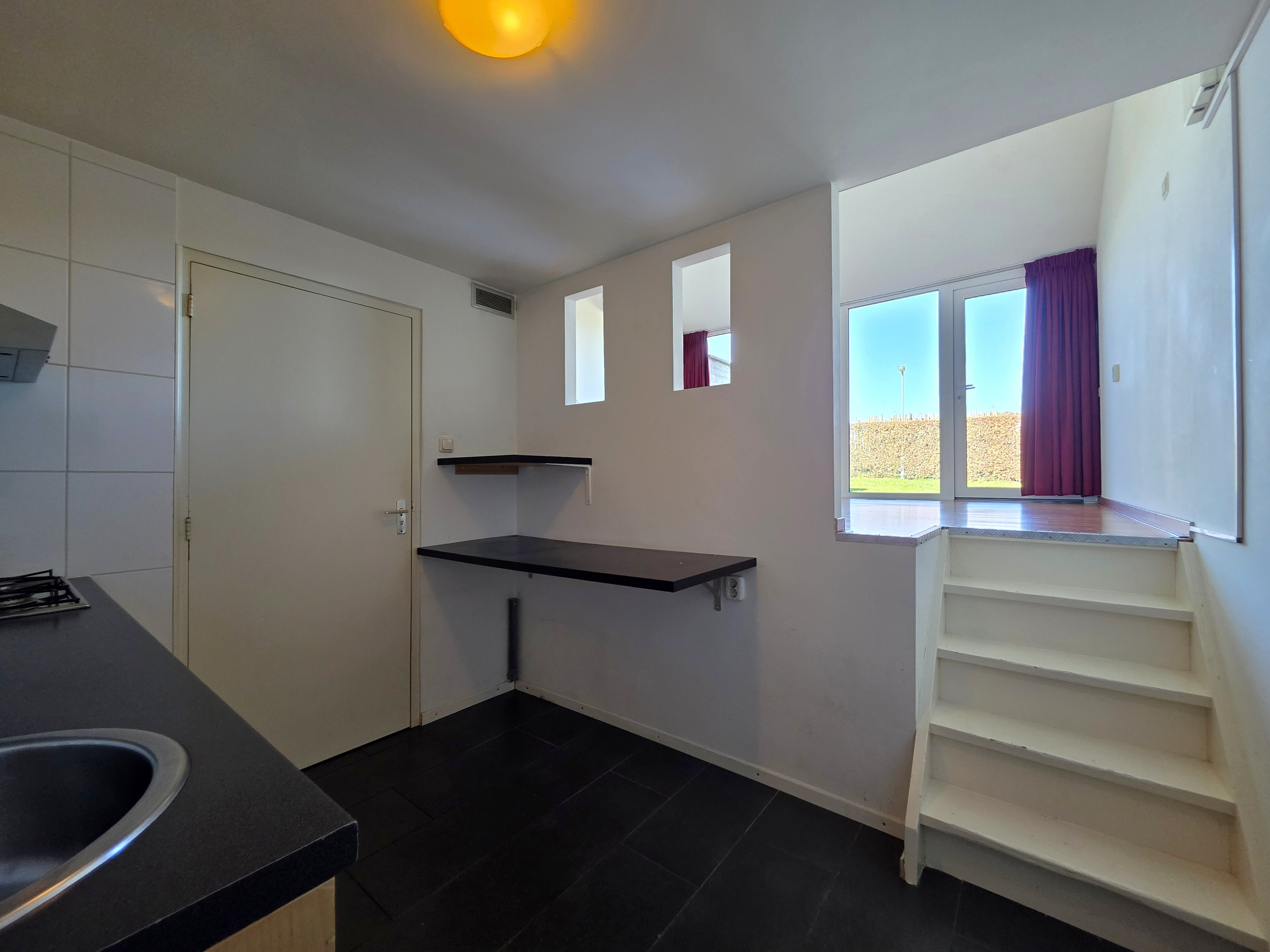 Niveau 0: entree; keuken (. 4 pits inductie kooktoestel, inbouw afzuigkap, spoelbak en mengkraan); separaat toilet met fontein en wasmachineaansluiting. Niveau 1: woonkamer (. laminaatvloer) met veel lichtinval (kunststof kozijnen met HR+++ glas) met toegang naar eigen betegelde terras van ca.