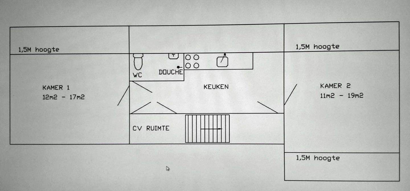 Tussen de 2 kamers in bevinden zich de WC, douche en keuken welke uitsluitend door de 2 huurders worden gebruikt.