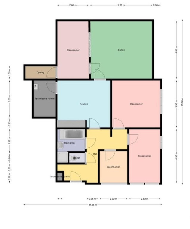 Aan de achterzijde bevindt zich de derde slaapkamer (13.5m2) met een ruime eigen muurkast.